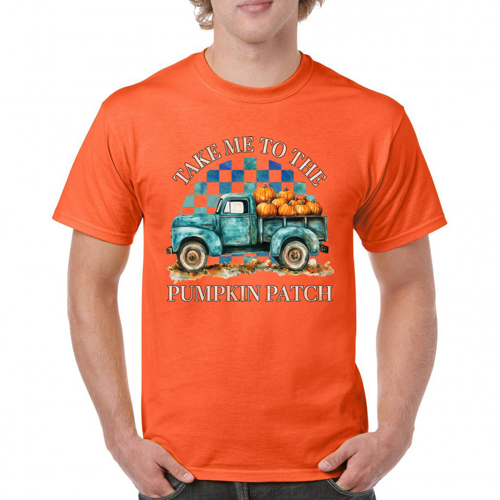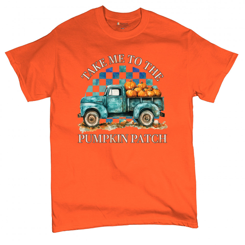 Celebrate autumn in style with the "Take Me to the Pumpkin Patch" design, featuring a vintage truck and festive pumpkins—perfect for fall lovers!