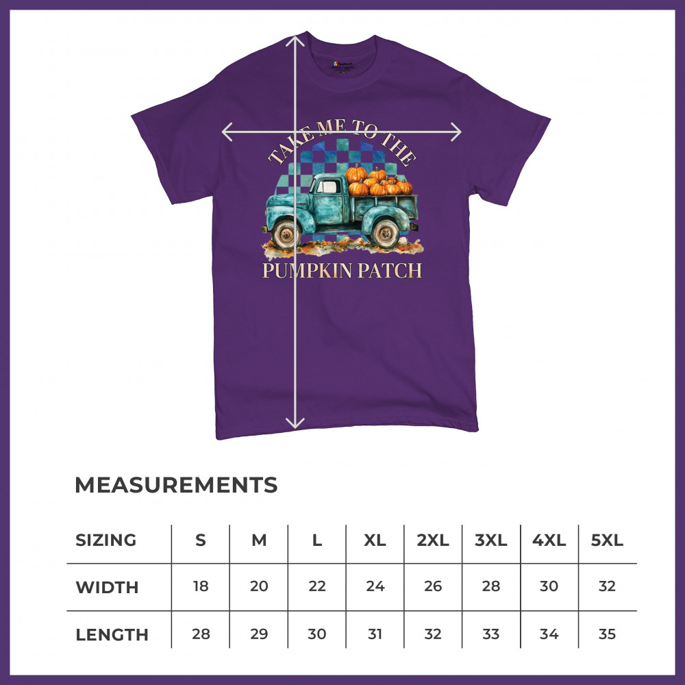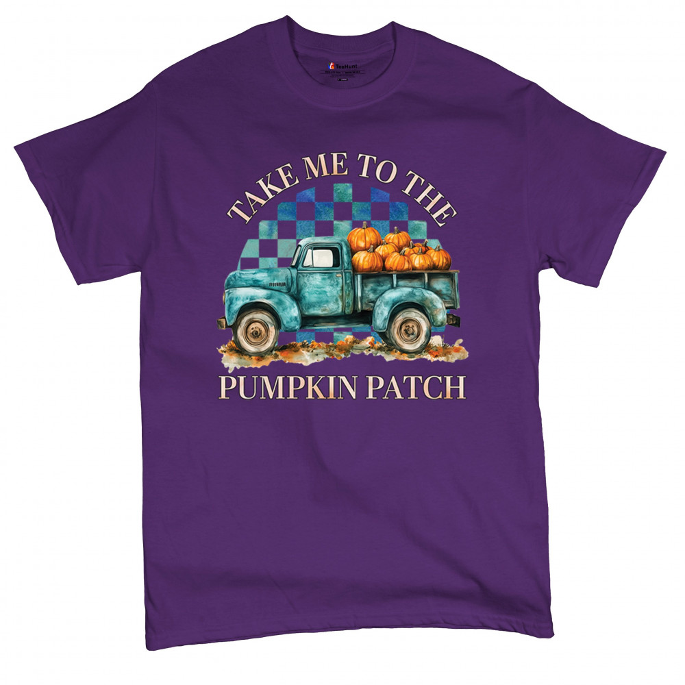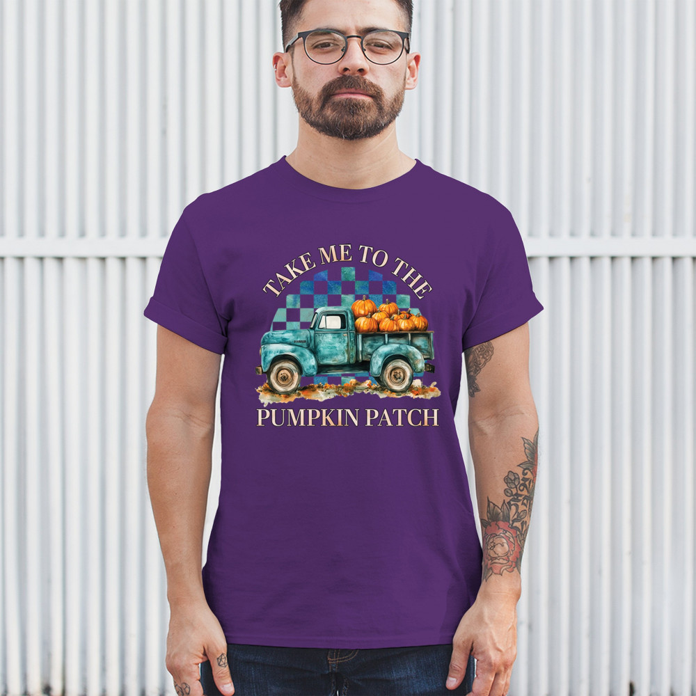 Celebrate autumn in style with the "Take Me to the Pumpkin Patch" design, featuring a vintage truck and festive pumpkins—perfect for fall lovers!