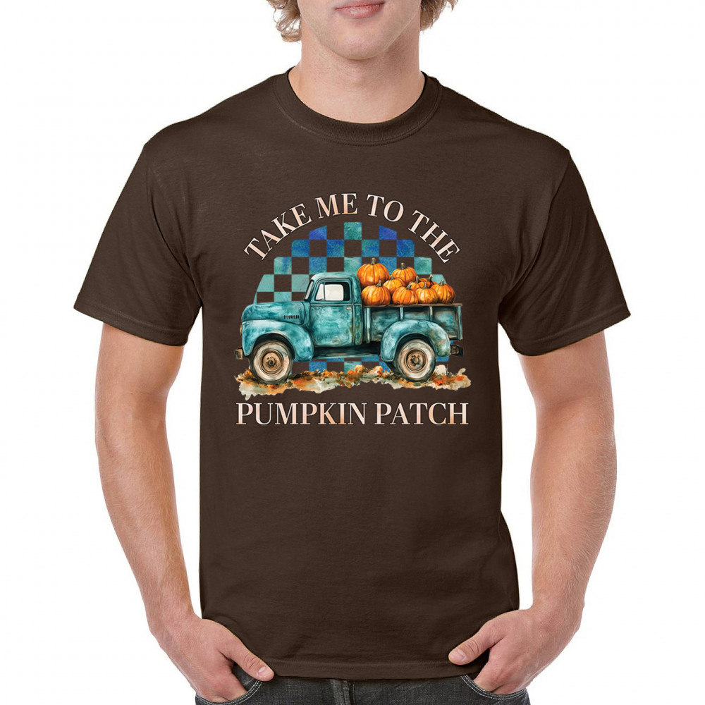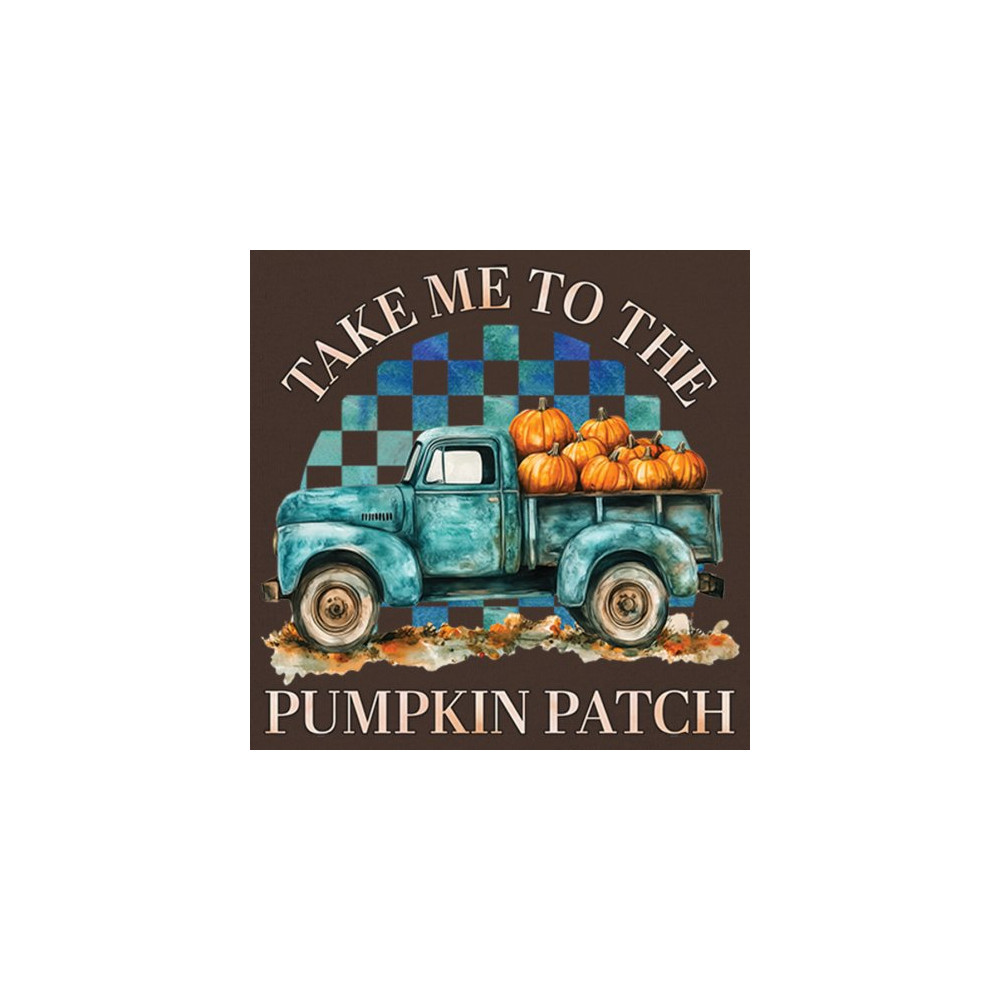 Celebrate autumn in style with the "Take Me to the Pumpkin Patch" design, featuring a vintage truck and festive pumpkins—perfect for fall lovers!