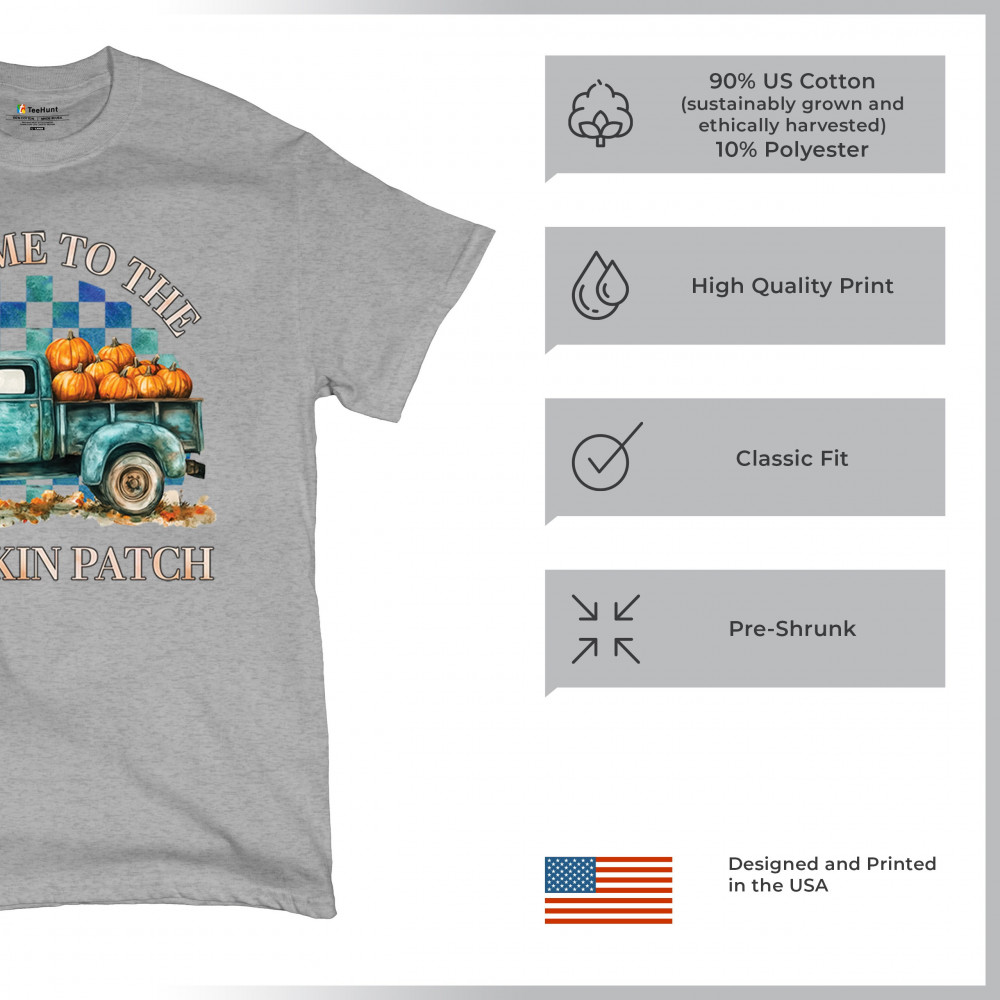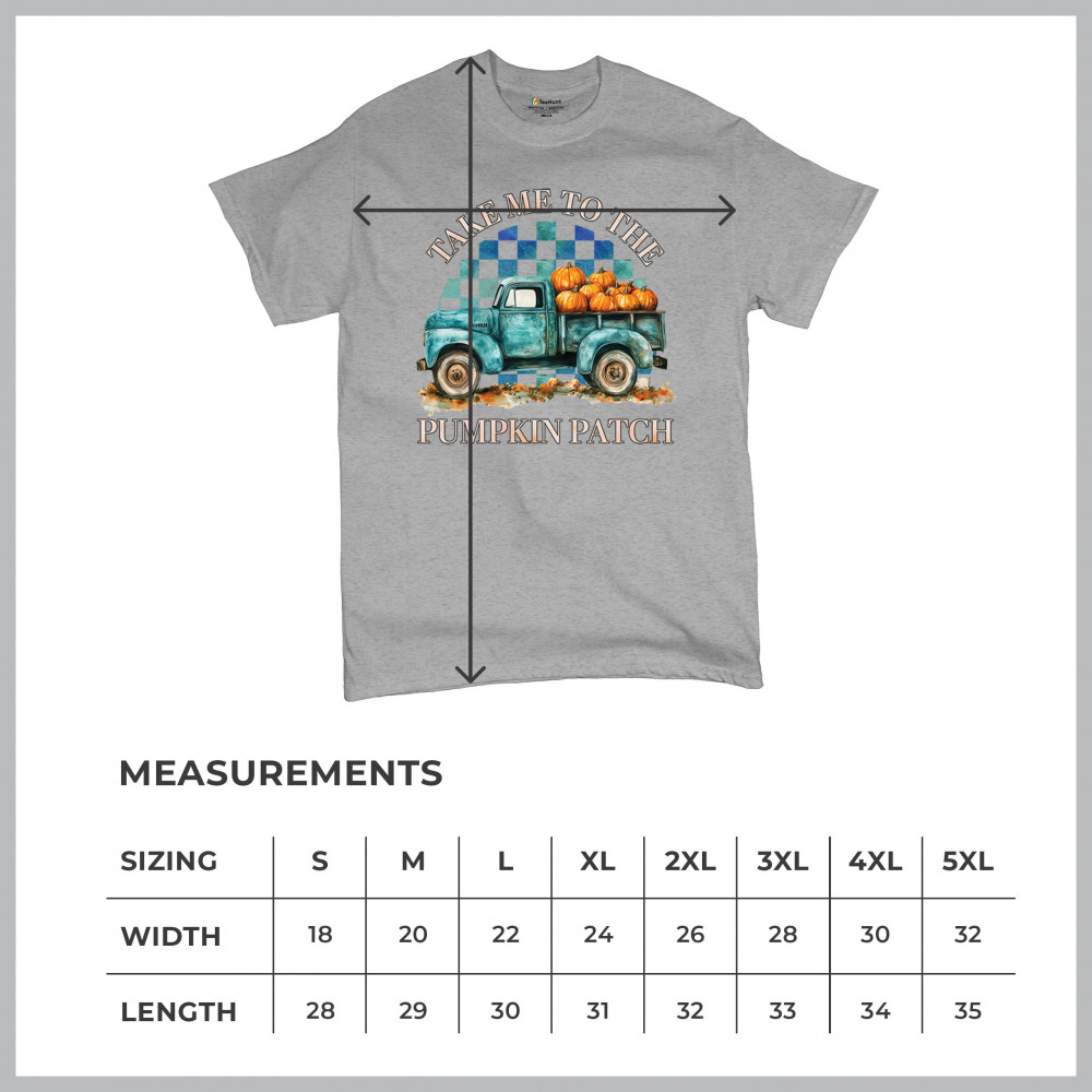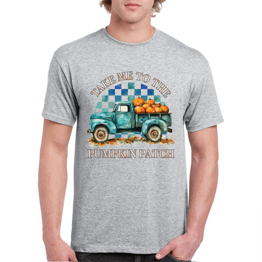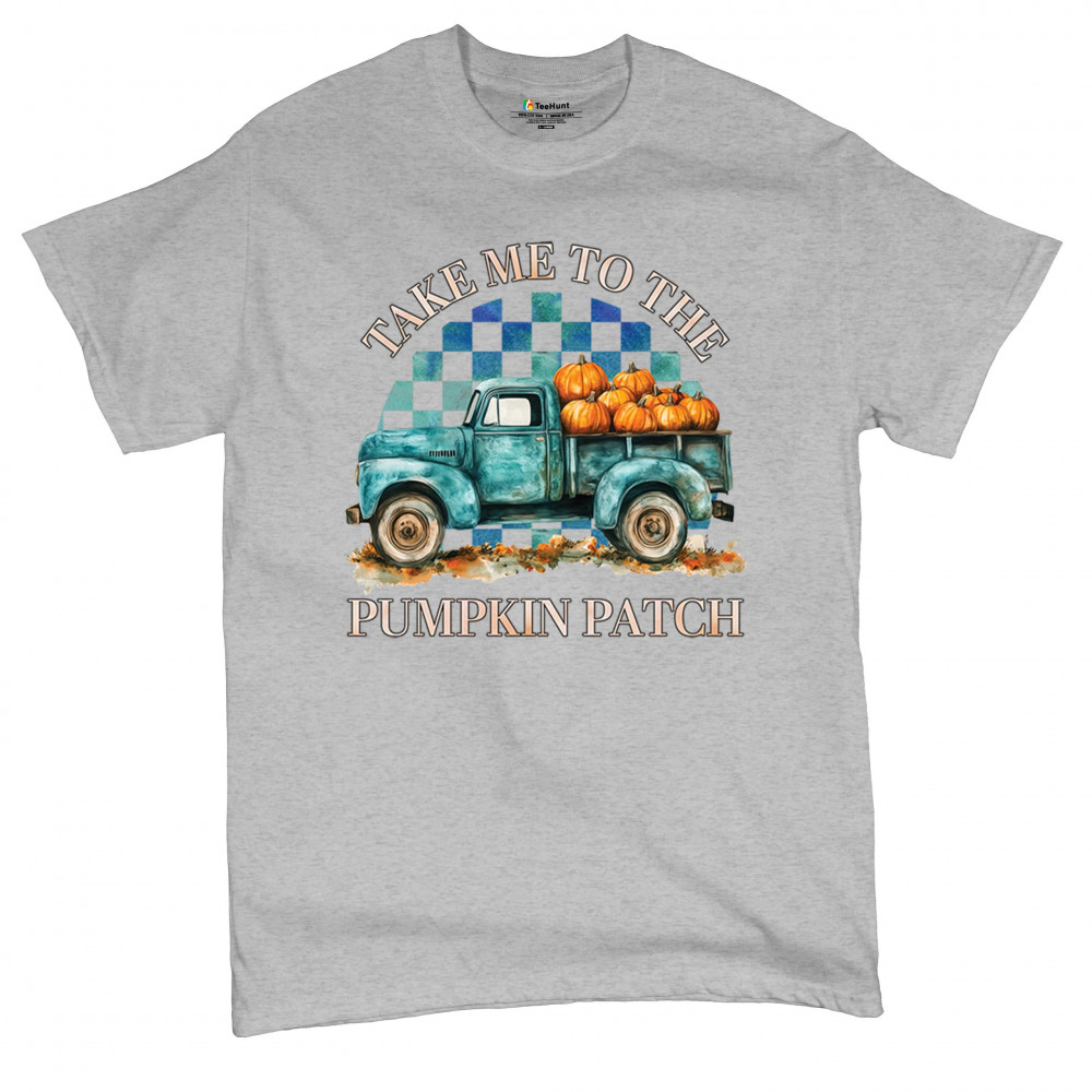 Celebrate autumn in style with the "Take Me to the Pumpkin Patch" design, featuring a vintage truck and festive pumpkins—perfect for fall lovers!