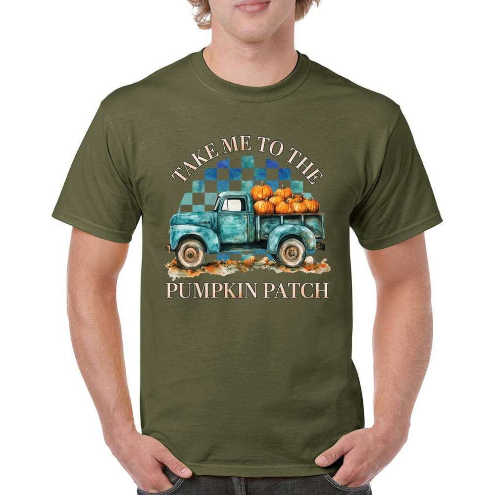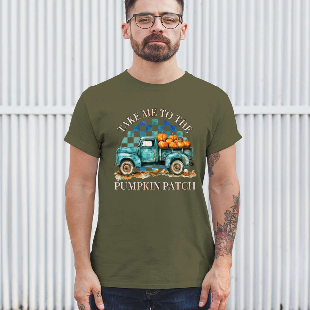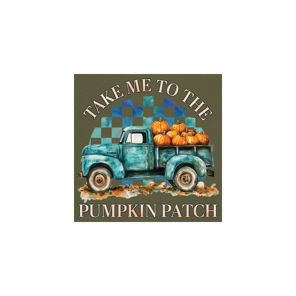 Celebrate autumn in style with the "Take Me to the Pumpkin Patch" design, featuring a vintage truck and festive pumpkins—perfect for fall lovers!