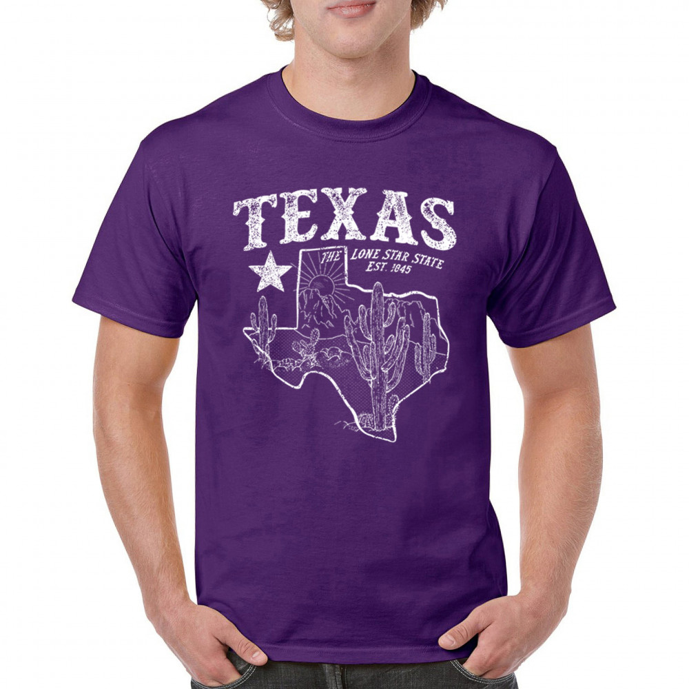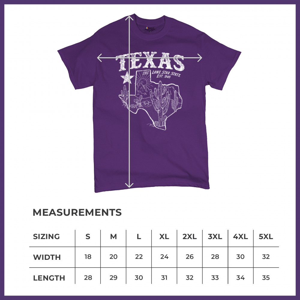 Celebrate the Lone Star State with this rugged Texas map design featuring cactus, mountains, and bold state pride text. A rustic southwestern tribute to the state’s heritage, established in 1845, it’s the perfect look for rodeos, country festivals, and lovers of the Texas desert lifestyle and scenery.