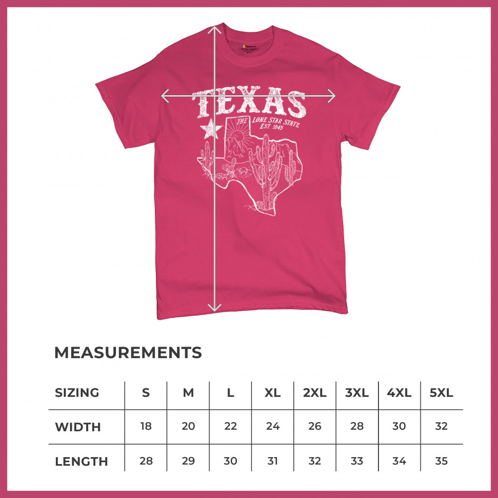 Celebrate the Lone Star State with this rugged Texas map design featuring cactus, mountains, and bold state pride text. A rustic southwestern tribute to the state’s heritage, established in 1845, it’s the perfect look for rodeos, country festivals, and lovers of the Texas desert lifestyle and scenery.