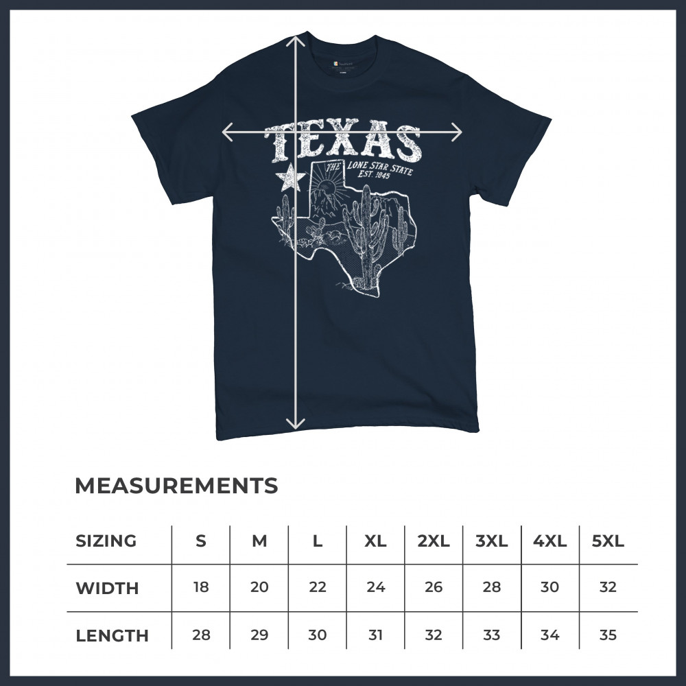 Celebrate the Lone Star State with this rugged Texas map design featuring cactus, mountains, and bold state pride text. A rustic southwestern tribute to the state’s heritage, established in 1845, it’s the perfect look for rodeos, country festivals, and lovers of the Texas desert lifestyle and scenery.