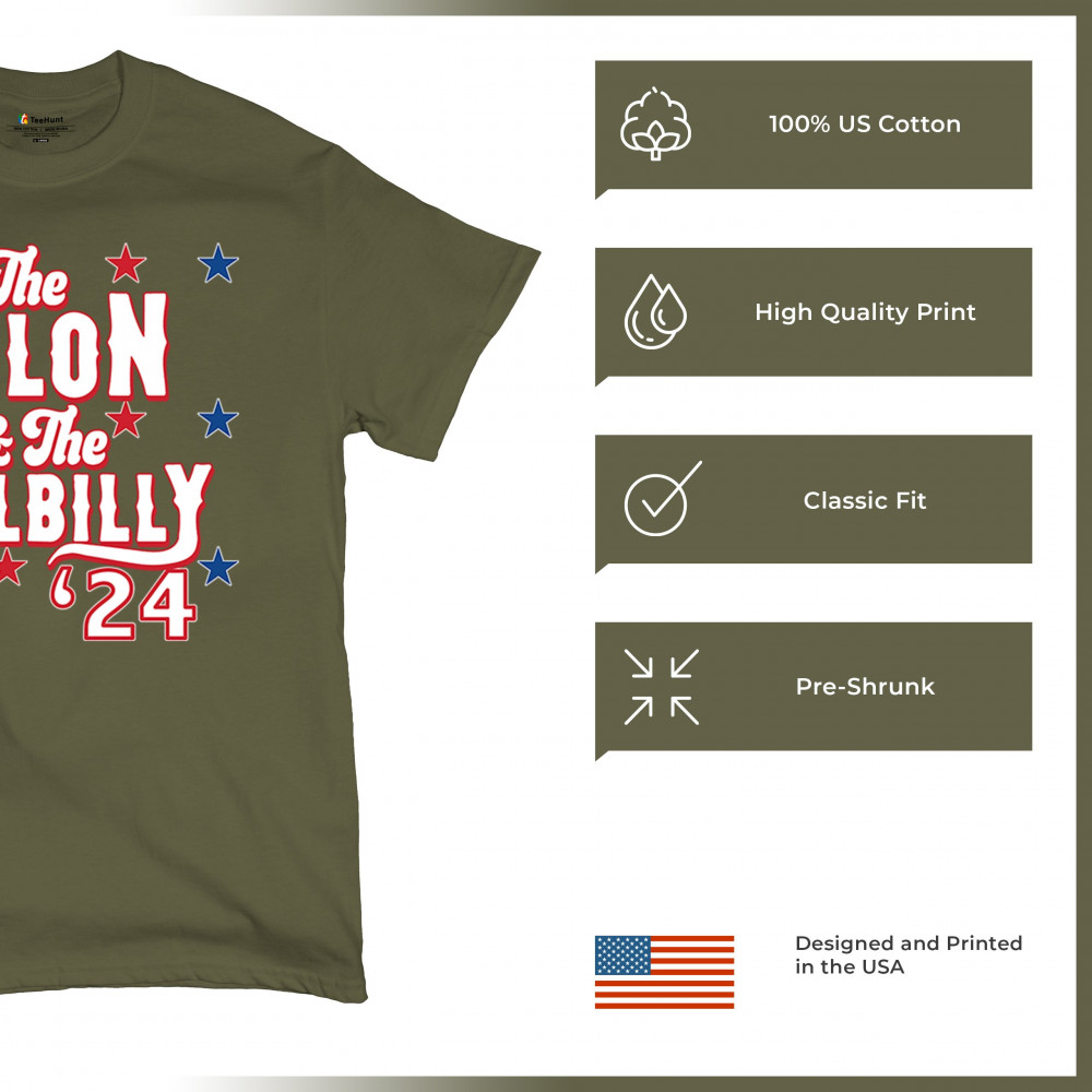 Get ready for the 2024 race with our "The Felon & The Hillbilly '24" print, embracing the humor and determination of Trump and Vance supporters. This design combines lighthearted political commentary with a bold statement of conservative pride. Whether for a rally or daily wear, let everyone know where you stand. Celebrate the American spirit, defy the odds, and take a stand for what you believe in. Proudly show your support in style!