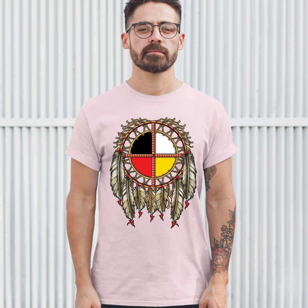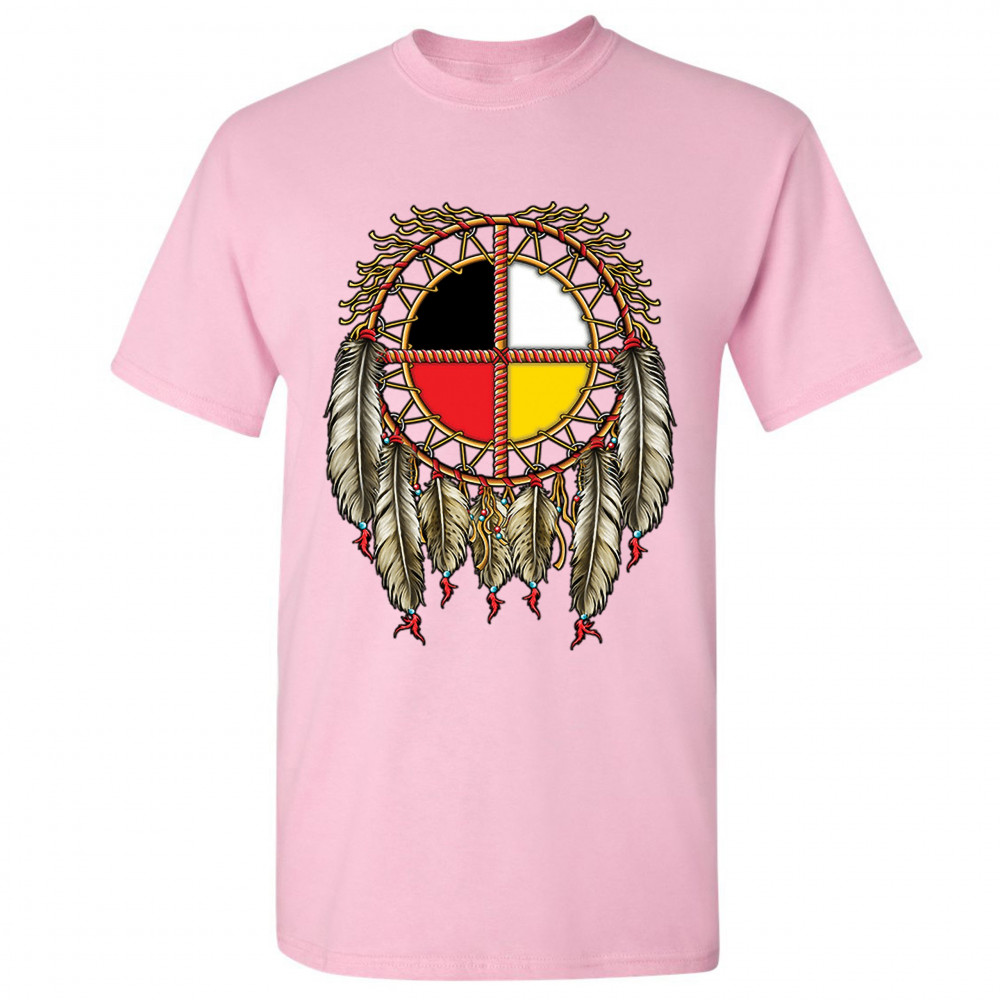 THE MEDICINE WHEEL DREAMCATCHER t-shirt native american symbol men's tee light pink