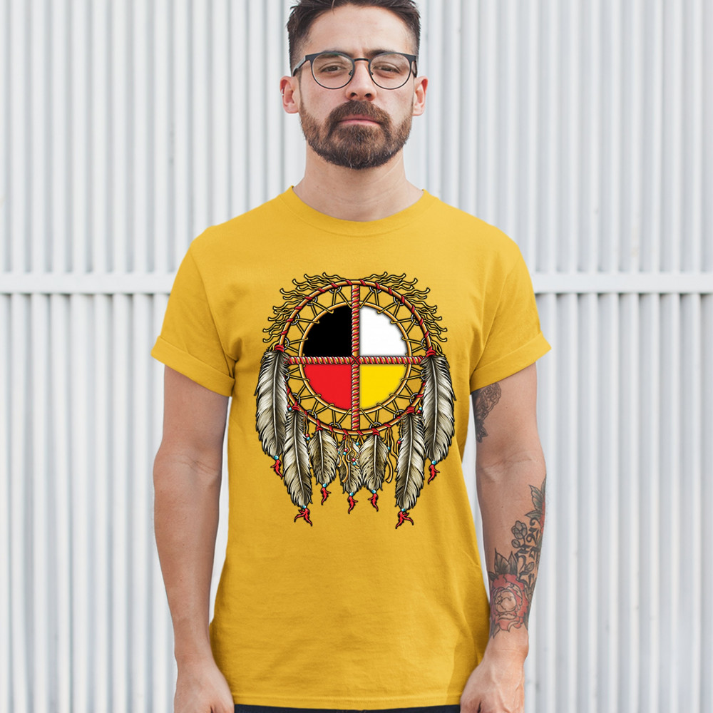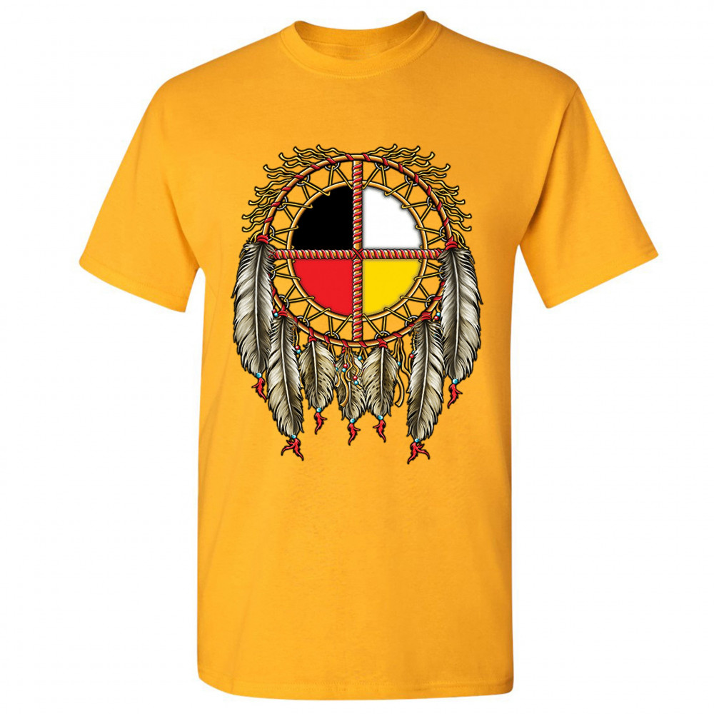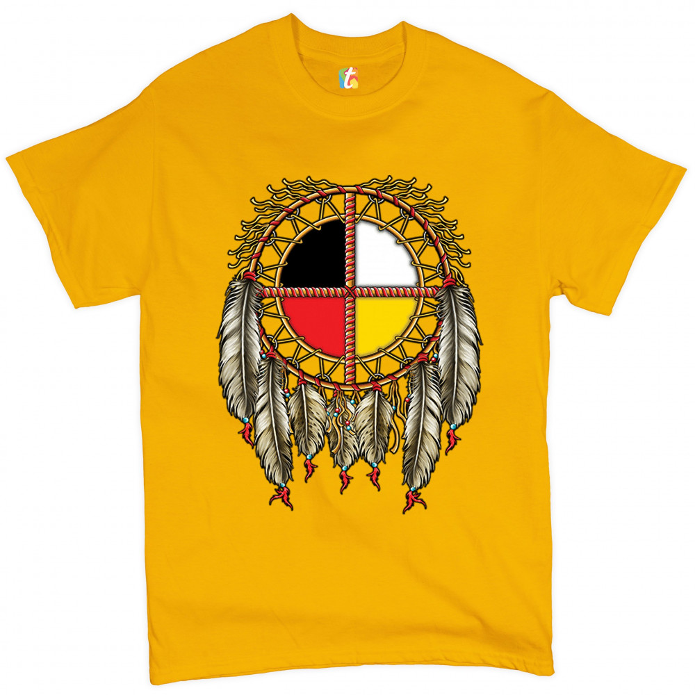THE MEDICINE WHEEL DREAMCATCHER t-shirt native american symbol men's tee yellow