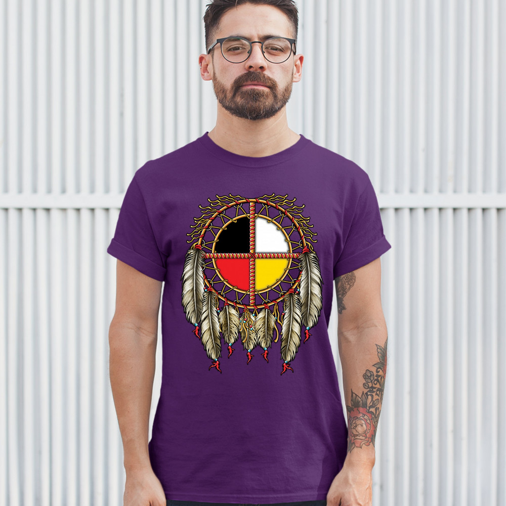 THE MEDICINE WHEEL DREAMCATCHER t-shirt native american symbol men's tee purple