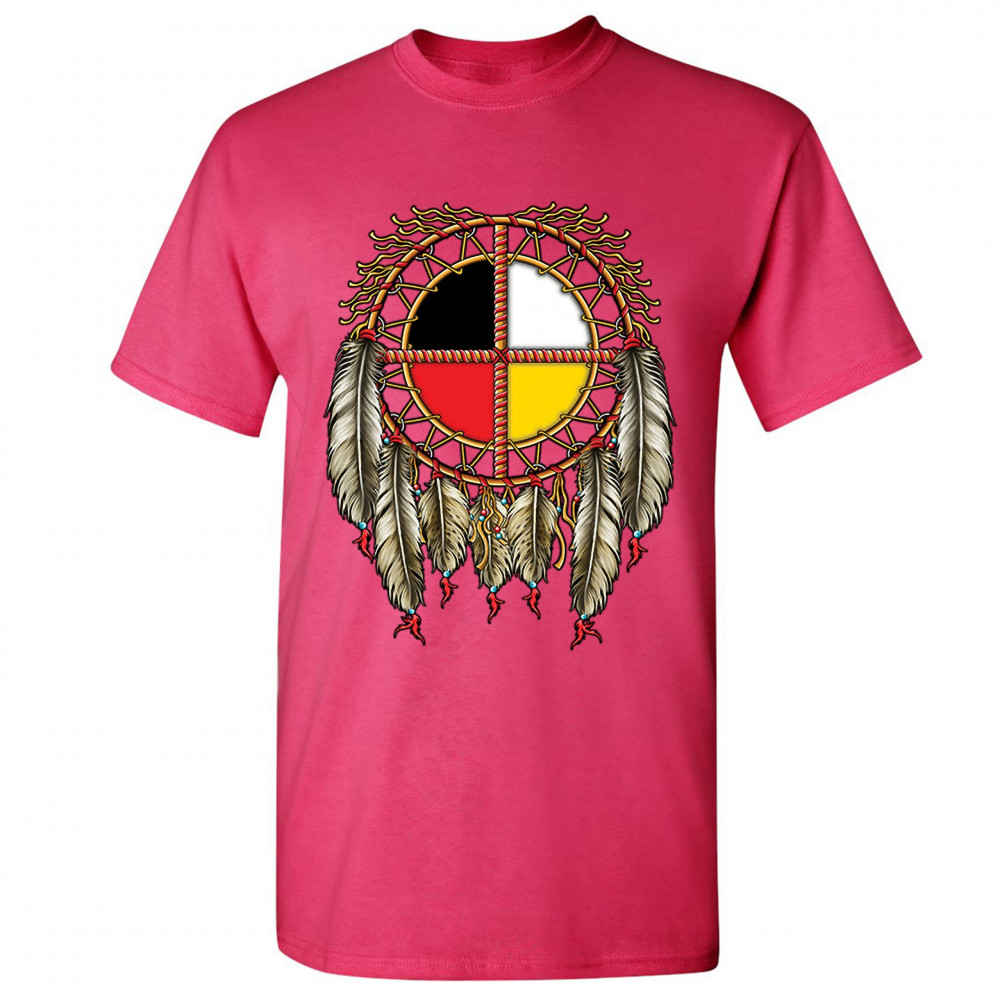 THE MEDICINE WHEEL DREAMCATCHER t-shirt native american symbol men's tee hot pink