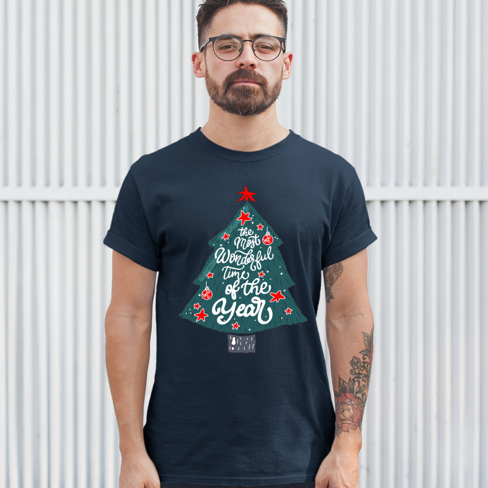 THE MOST WONDERFUL TIME OF THE YEAR t-shirt christmas tree xmas men's tee navy blue