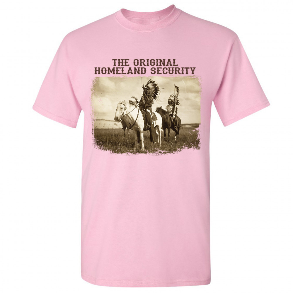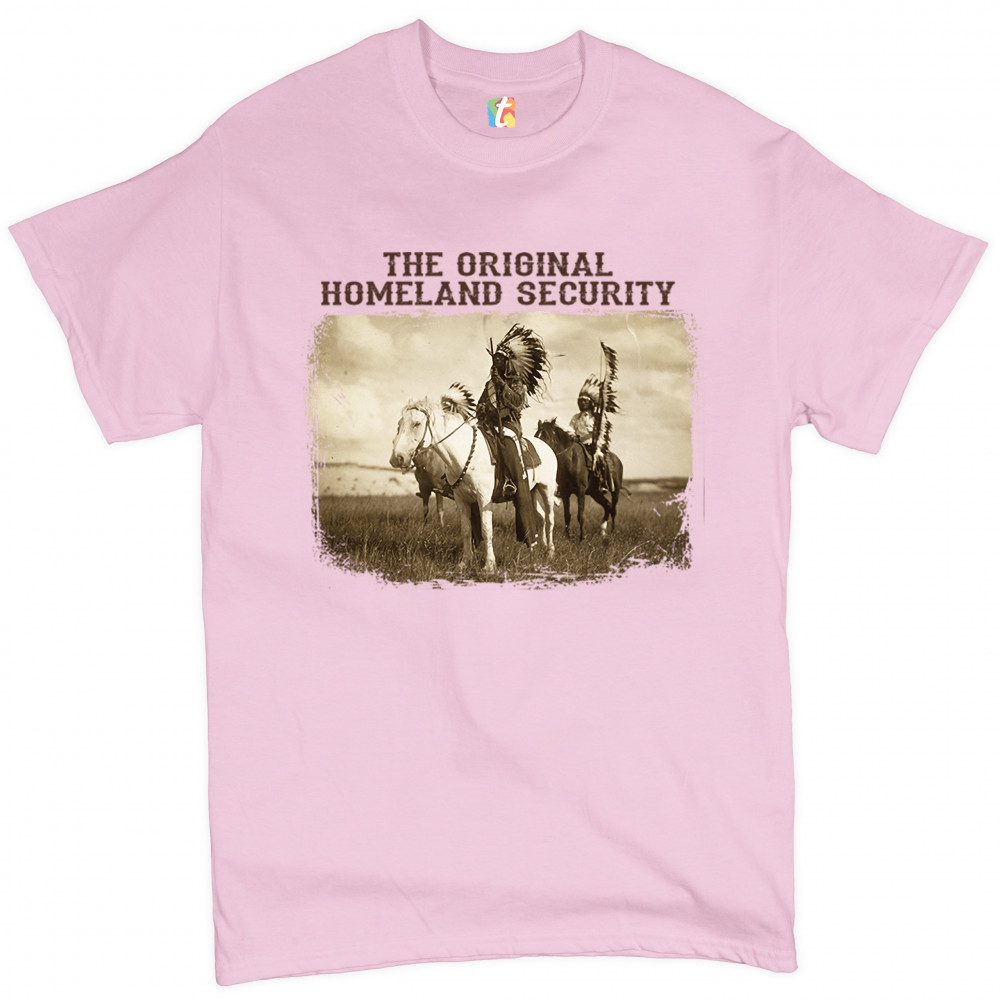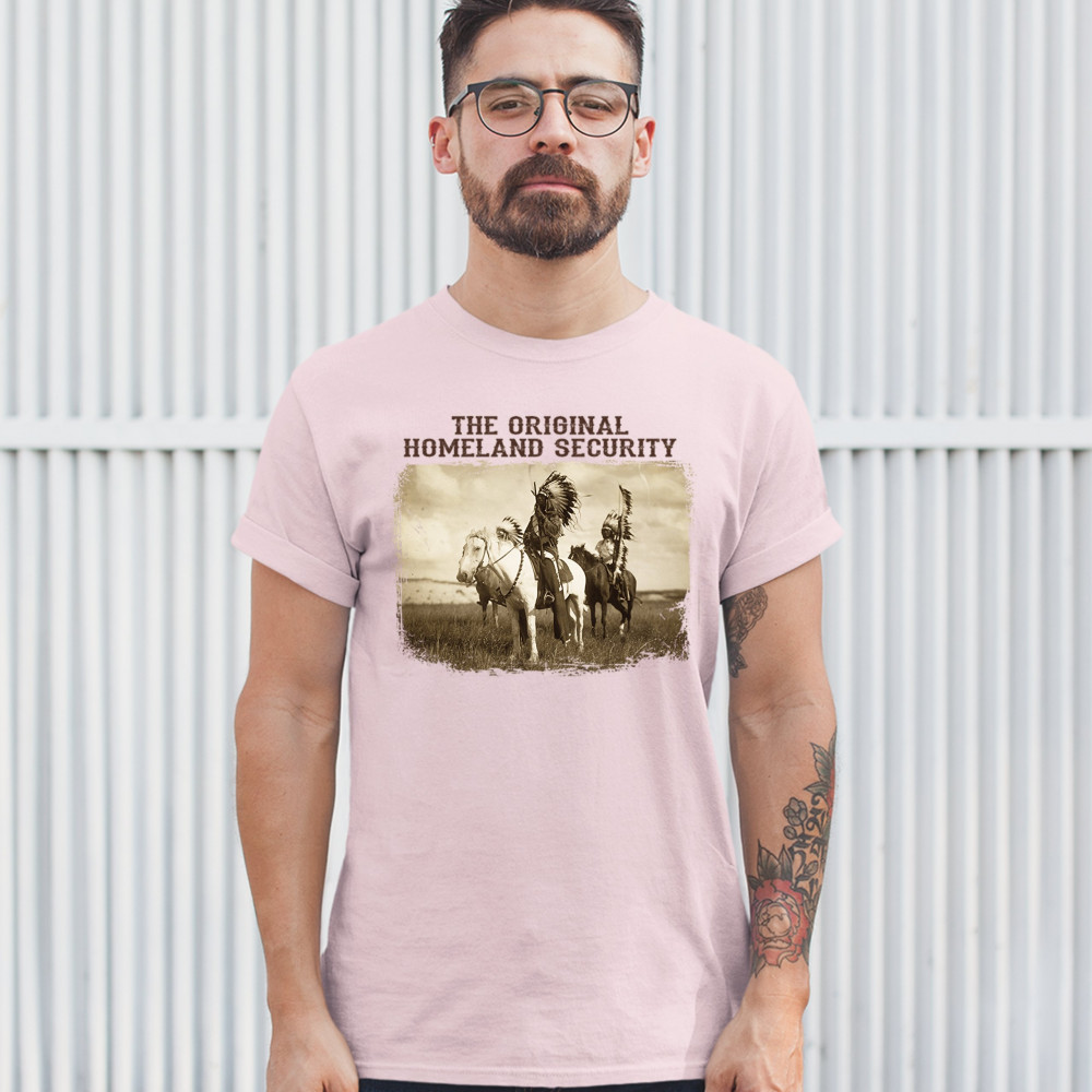 THE ORIGINAL HOMELAND SECURITY t-shirt indigenous tribal chiefs men's tee light pink