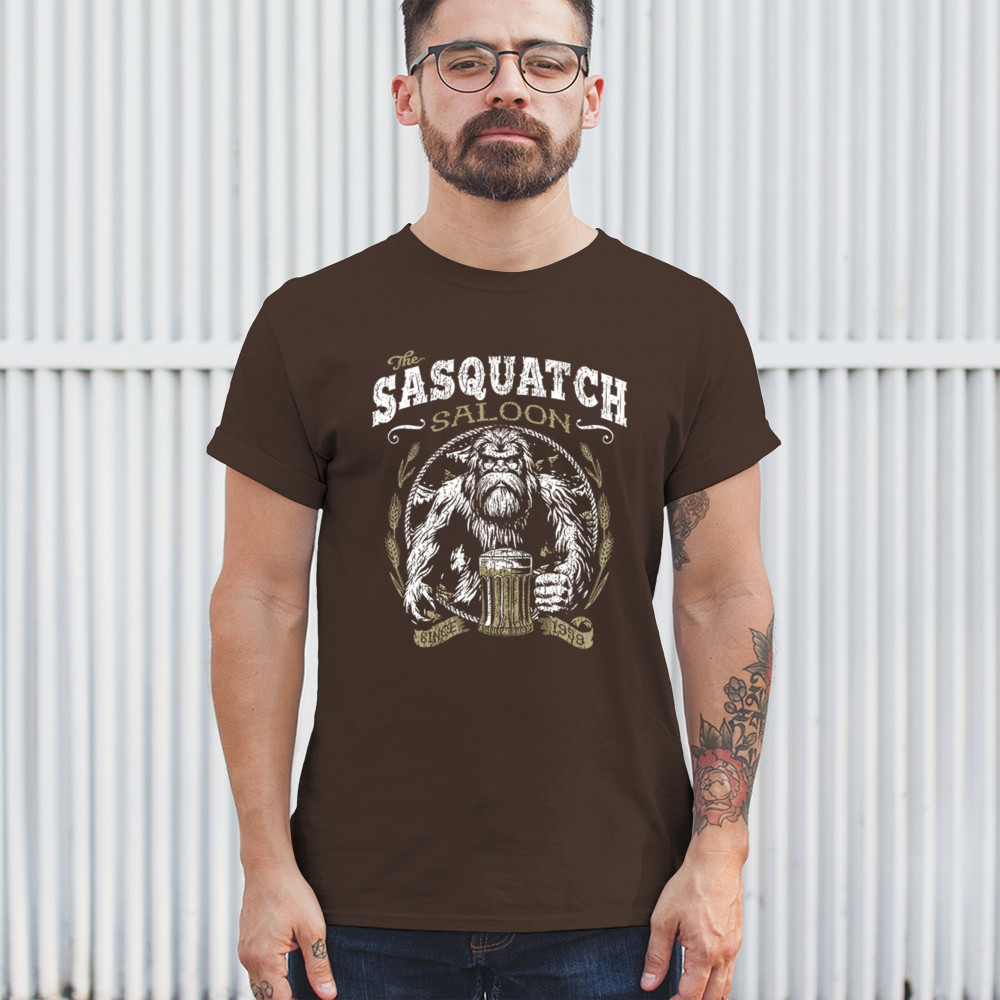 "Sasquatch Saloon" – A bold Bigfoot design for beer lovers and cryptid fans. Perfect for casual wear, parties, or as a gift for Bigfoot enthusiasts!