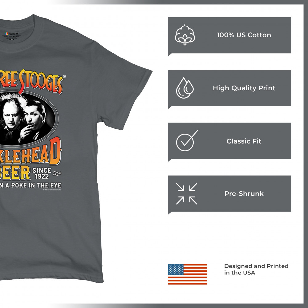 Channel the humor of The Three Stooges with our Nyuklehead Beer T-shirt, perfect for fans of the classic comedic legends.