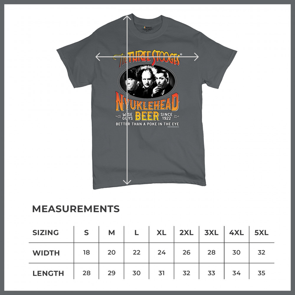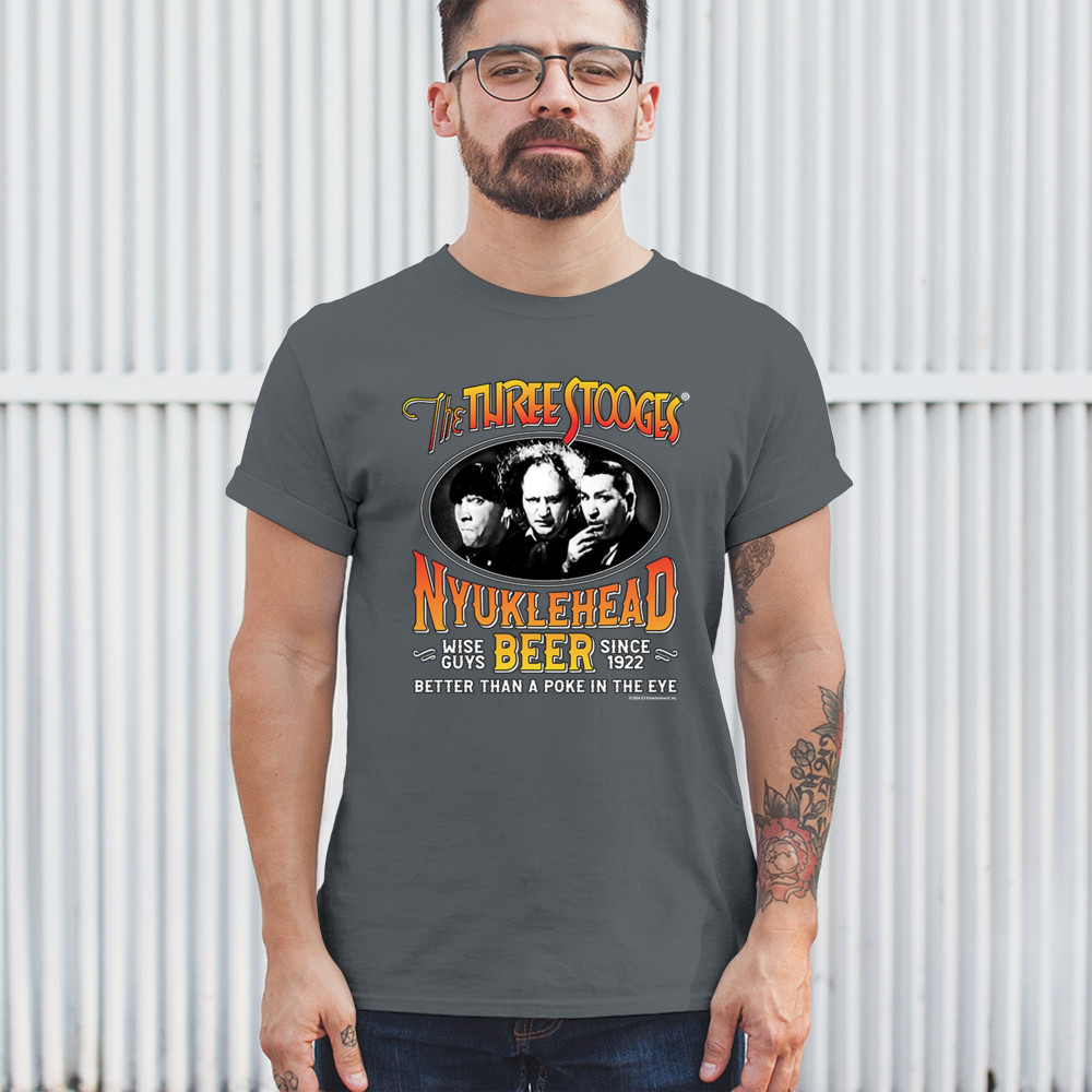Celebrate the kings of comedy with our exclusive Three Stooges Nyuklehead Beer shirt. Featuring the legendary faces of Moe, Larry, and Curly, this tee is a tribute to the humor that has been tickling funny bones since 1922. Printed with "Wise Guys Beer," it's a playful nod to those who love a good laugh along with their brew. Whether you're a long-time Stooges aficionado or discovering their antics for the first time, this shirt is a conversation starter for any casual outing or Stooges-themed event.