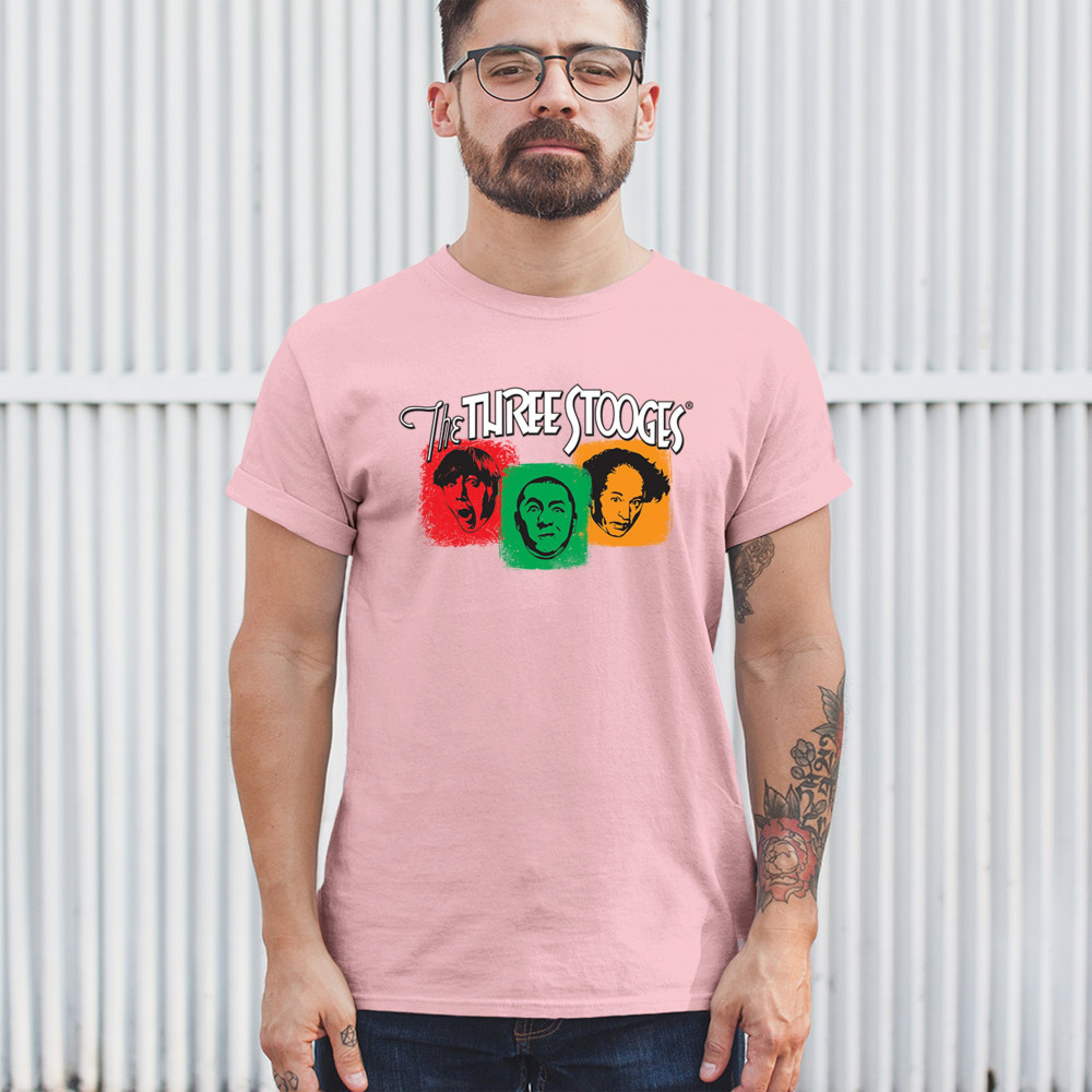 Capturing the essence of comedy, this design brings The Three Stooges into the modern era with a vivid, graphic portrayal. Each Stooge is highlighted in a distinct hue—red for Moe, green for Larry, and orange for Curly—mirroring their vibrant personalities that have transcended generations. This piece is a visual celebration, a colorful tribute to the laughter and joy they continue to bring into the world.