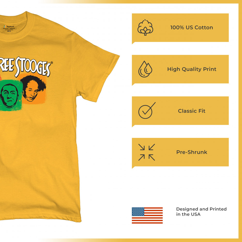 Embrace the classic trio with our Three Stooges design, where the antics of Larry, Moe, Curly, and Shemp come alive in retro style—a true Rushmorons revival.