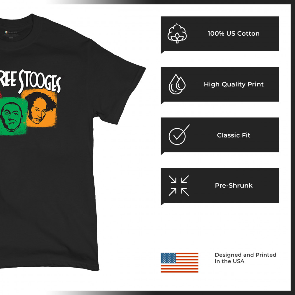 Embrace the classic trio with our Three Stooges design, where the antics of Larry, Moe, Curly, and Shemp come alive in retro style—a true Rushmorons revival.