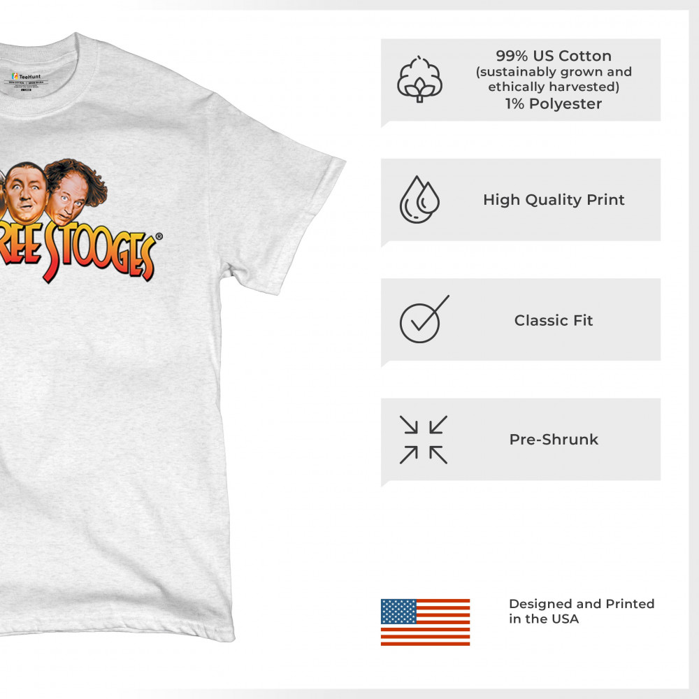 Discover the essence of classic slapstick with our premium Three Stooges T-shirt, featuring the inimitable Moe, Larry, and Curly. This tee immortalizes the unparalleled comic timing and unforgettable antics that have become a cornerstone of American humor. Designed for durability and comfort, it's a piece that not only celebrates the past but also brings a piece of it into the present. It's the ultimate tribute to the trio that turned comedy into an art form, and it's an invitation to keep the spirit of laughter alive in your everyday life.