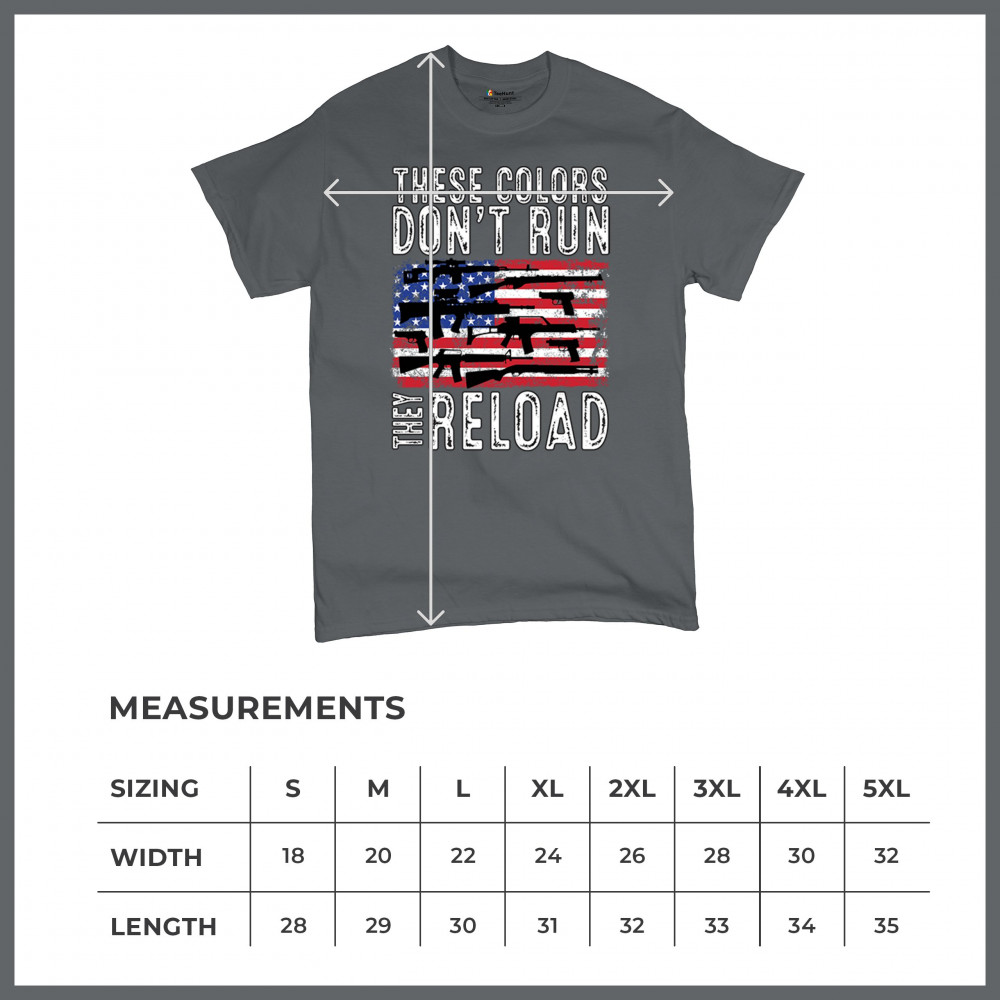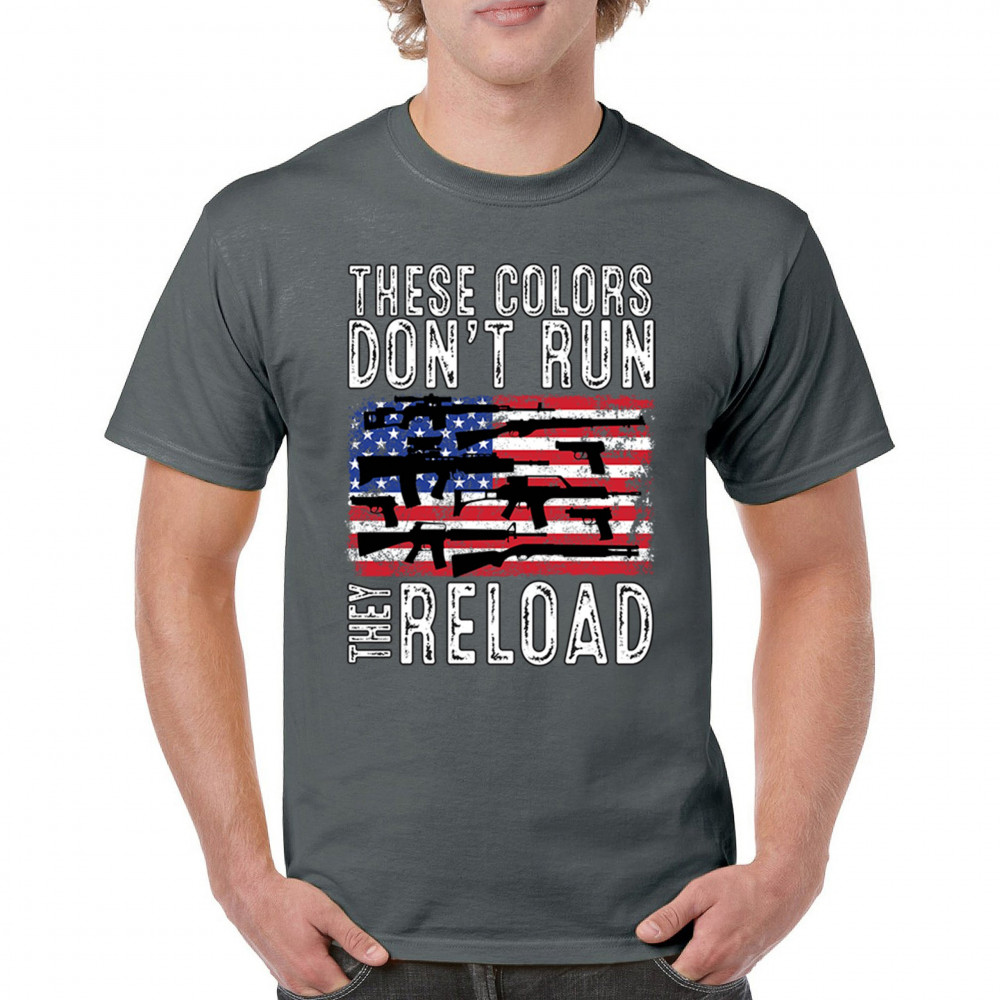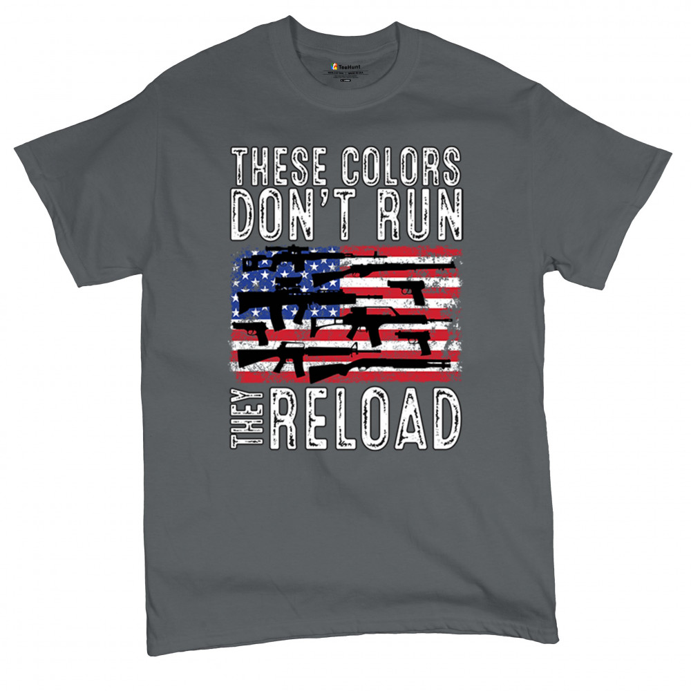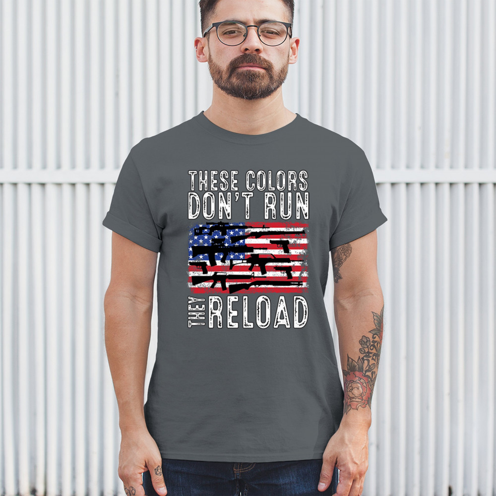Explore the embodiment of patriotism with our 'These Colors Don't Run, They Reload' tee. A bold statement for those who honor freedom and resilience.