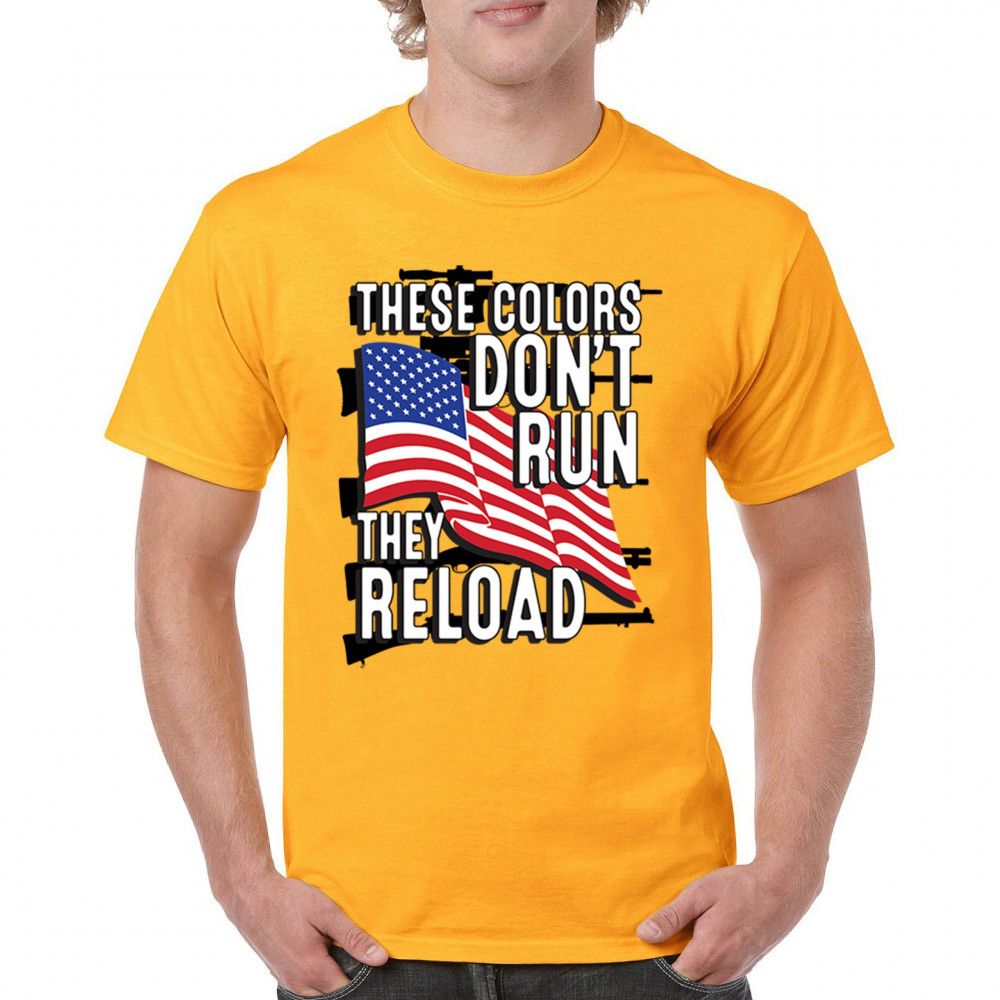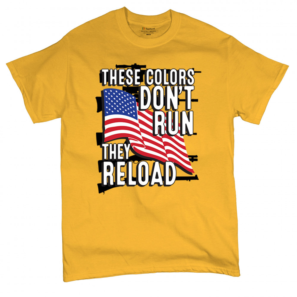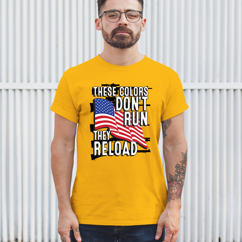Discover the tee that boldly proclaims American resilience and liberty: 'These Colors Don't Run, They Reload'—a must-have for patriots and veterans.