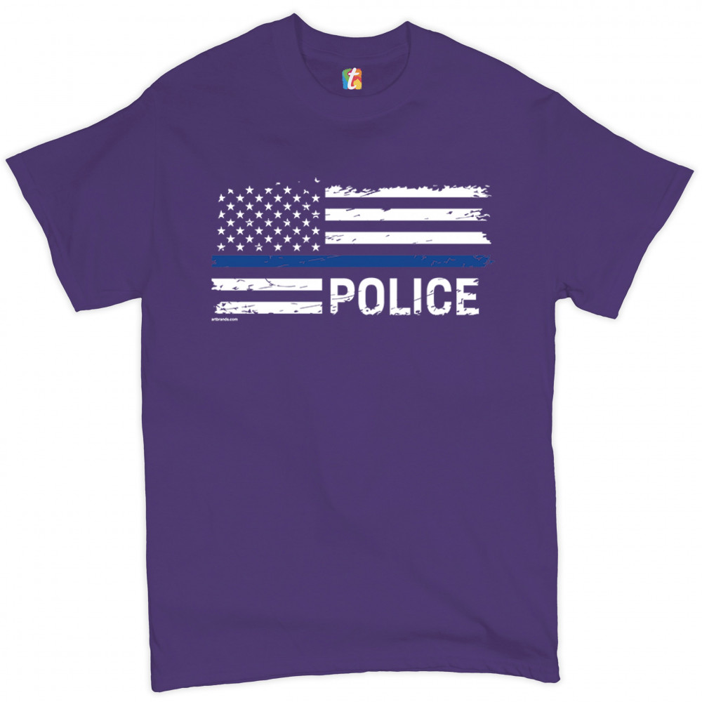 THIN BLUE LINE AMERICAN FLAG t-shirt police law enforcement men's tee purple