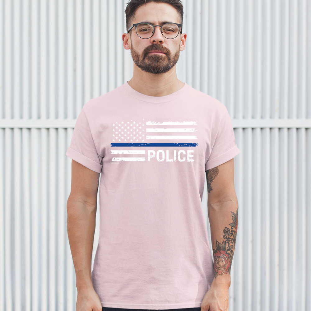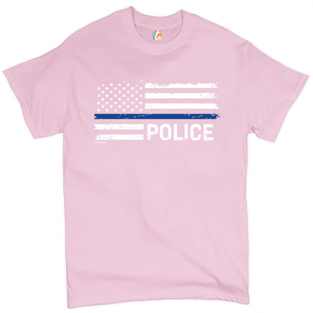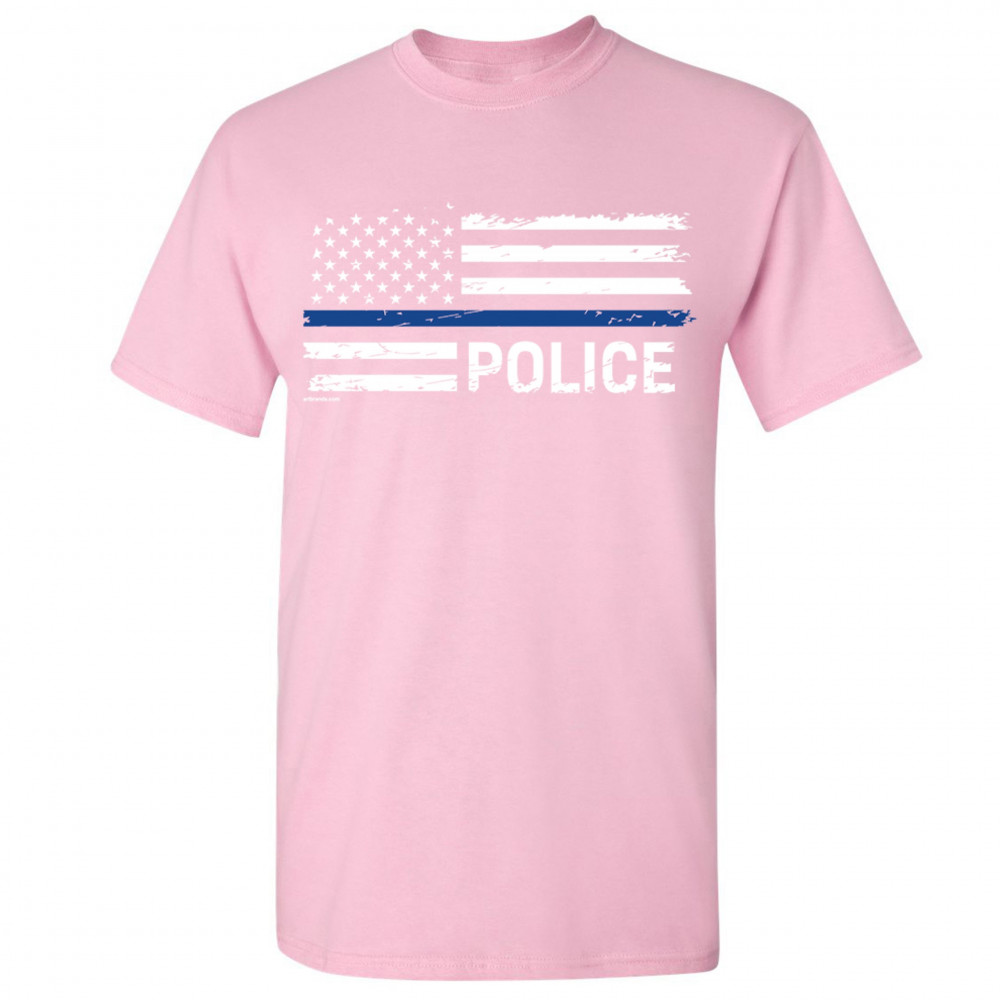 THIN BLUE LINE AMERICAN FLAG t-shirt police law enforcement men's tee light pink