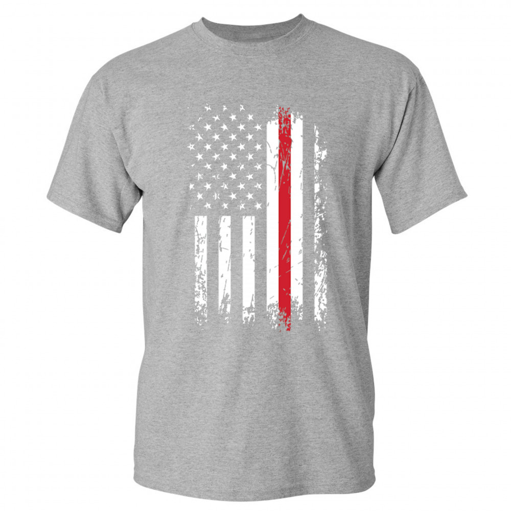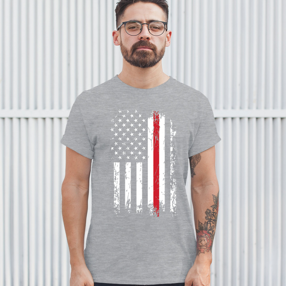 THIN RED LINE t-shirt american flag firefighter fire department men's tee gray