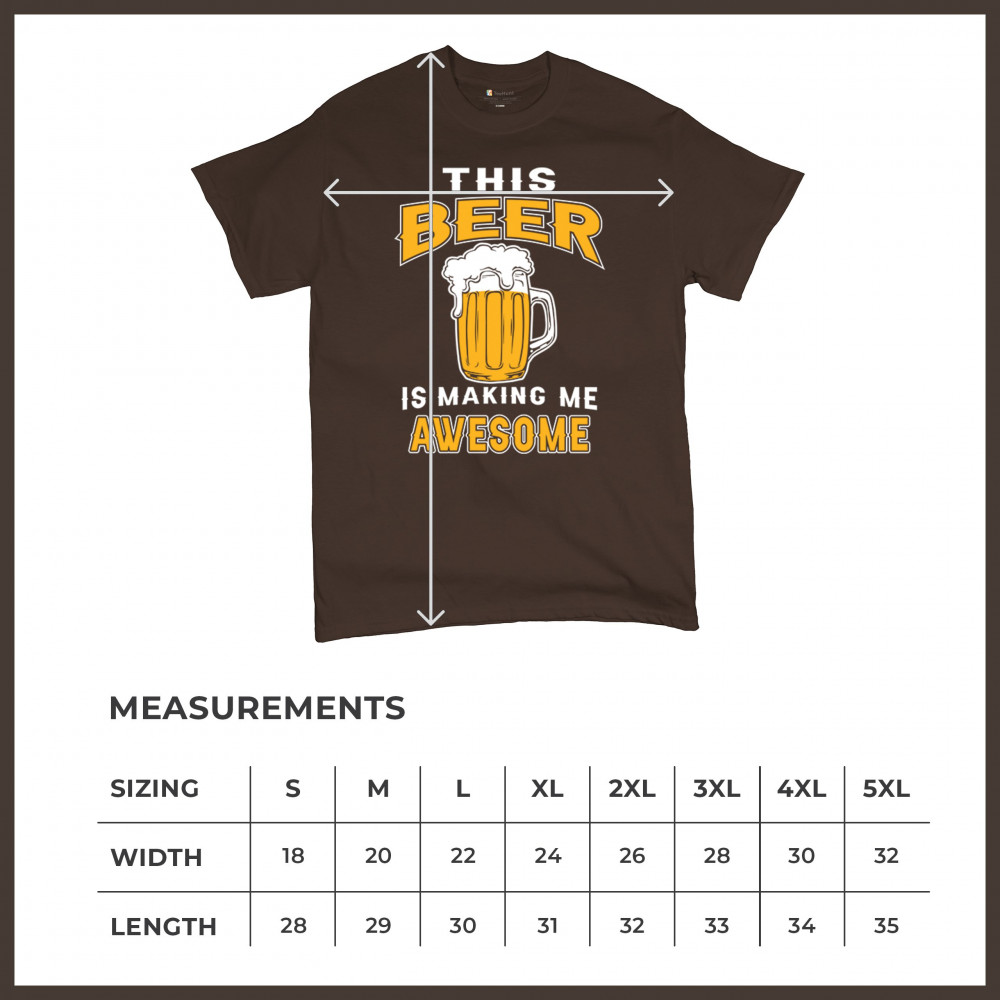 Showcase your beer-loving personality with our "This Beer is Making Me Awesome" design. This fun and humorous design features a frothy beer mug and a witty quote that beer enthusiasts will love. Perfect for beer festivals, parties, or casual outings, this design is a great way to express your love for beer. It also makes an excellent gift for craft beer lovers, brewmasters, and anyone who enjoys a good laugh. Add a touch of humor to your wardrobe with this awesome beer-themed design!