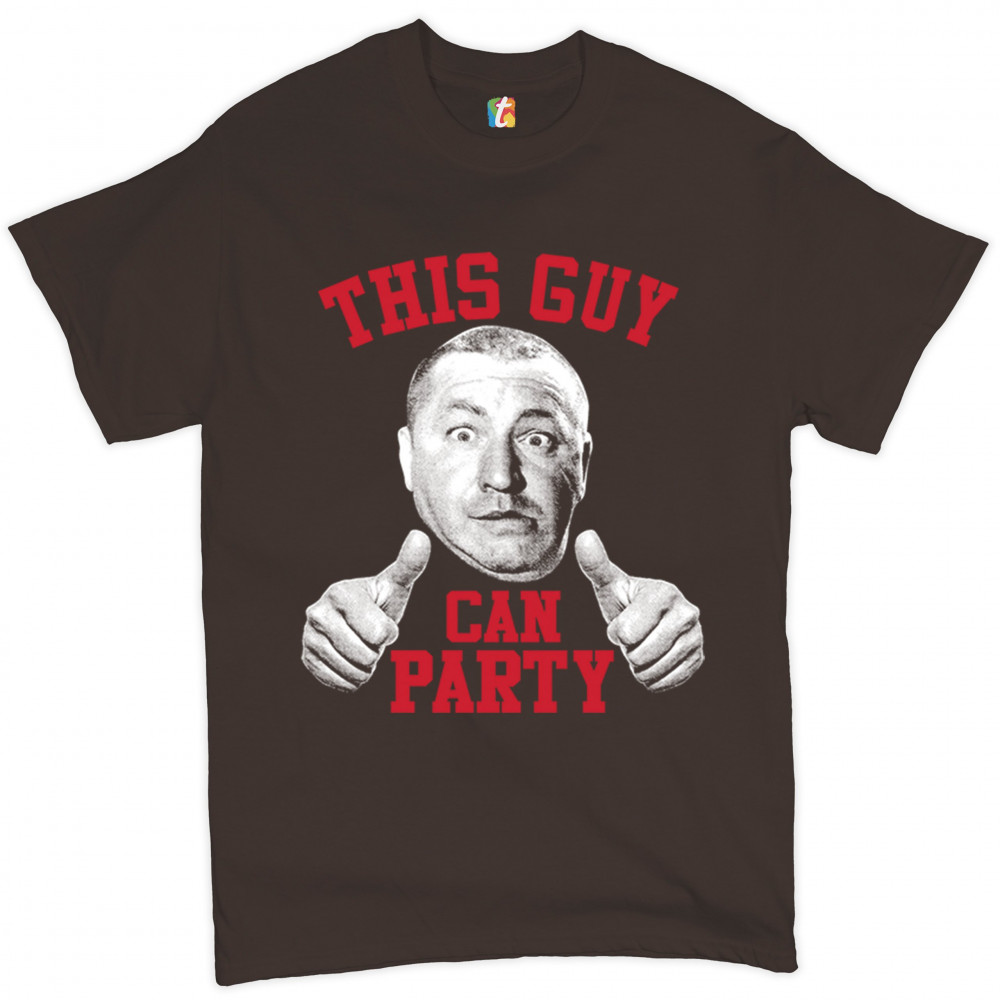 THIS GUY CAN PARTY t-shirt curly howard the three stooges men's tee brown