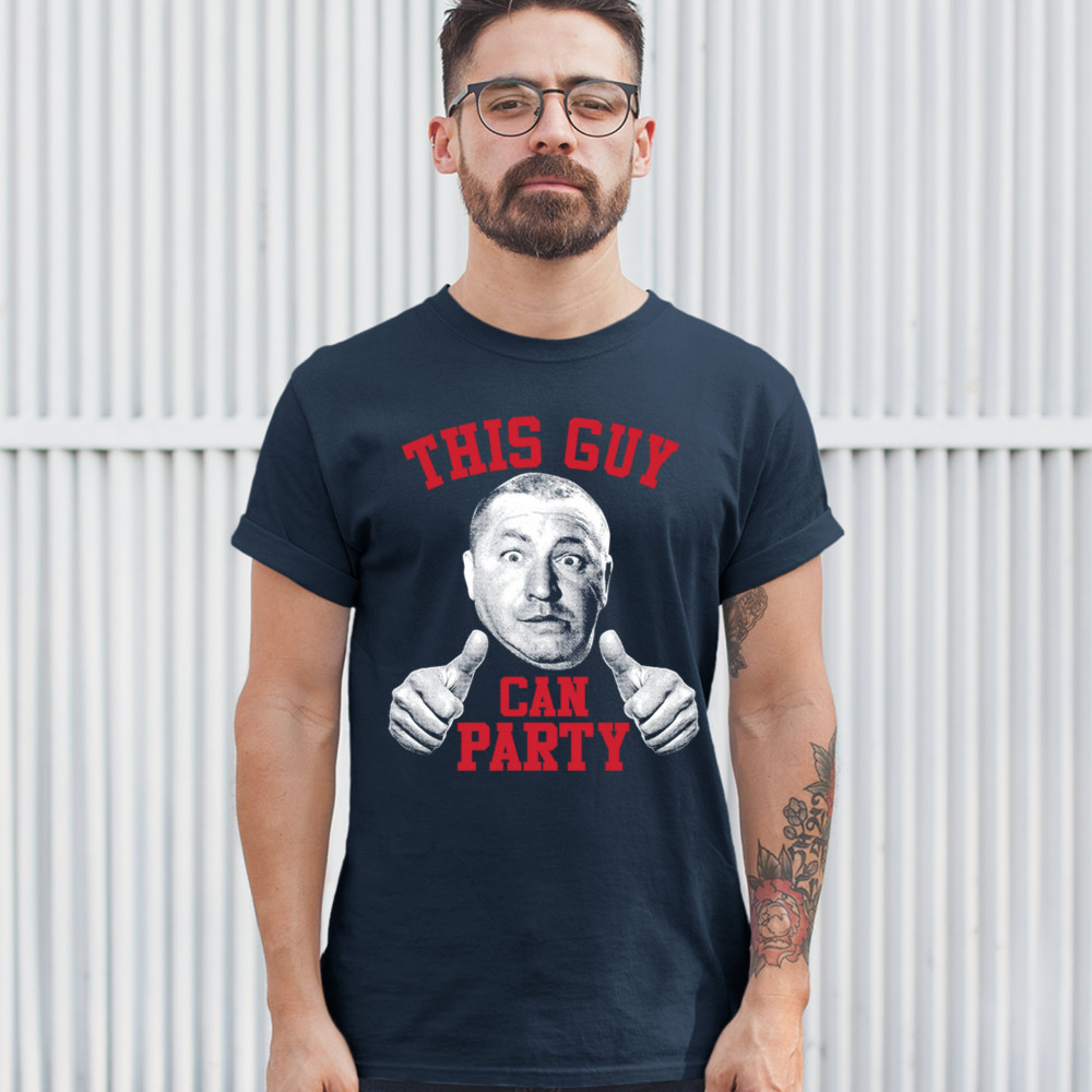 THIS GUY CAN PARTY t-shirt curly howard the three stooges men's tee navy blue