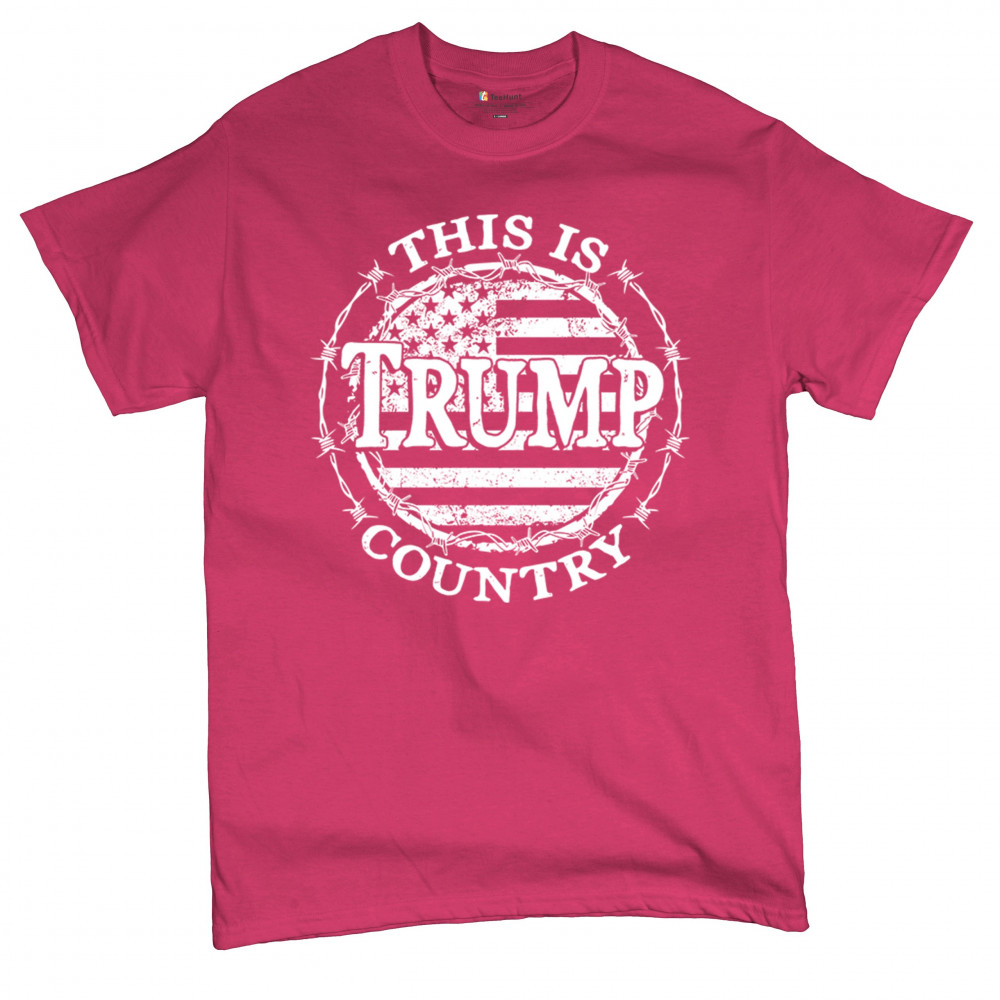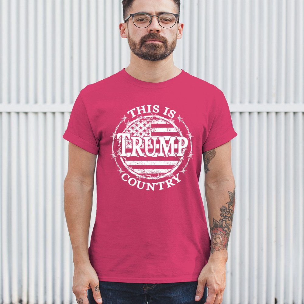 Show your support for Trump and JD Vance with the "Trump Country" design, featuring a distressed American flag and barbed wire. Perfect for rallies and patriotic events.