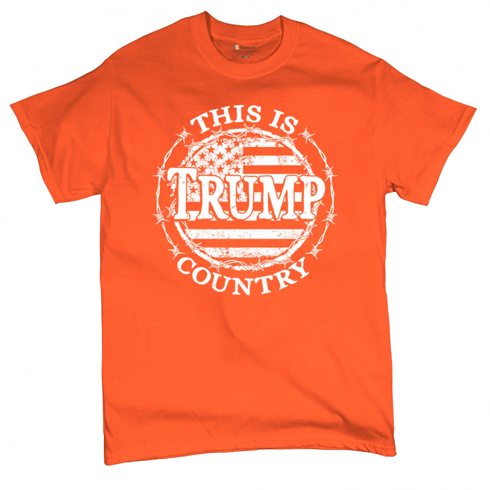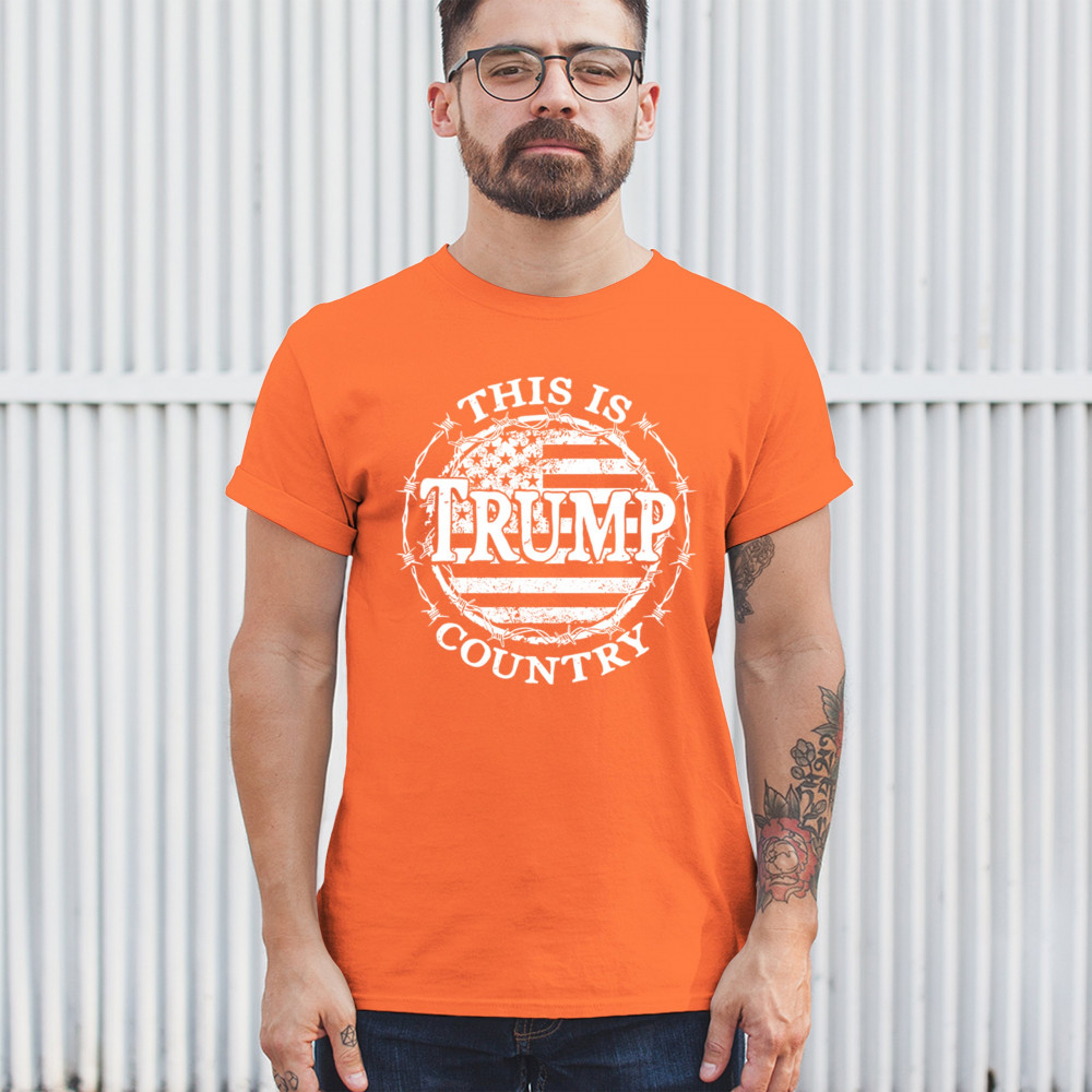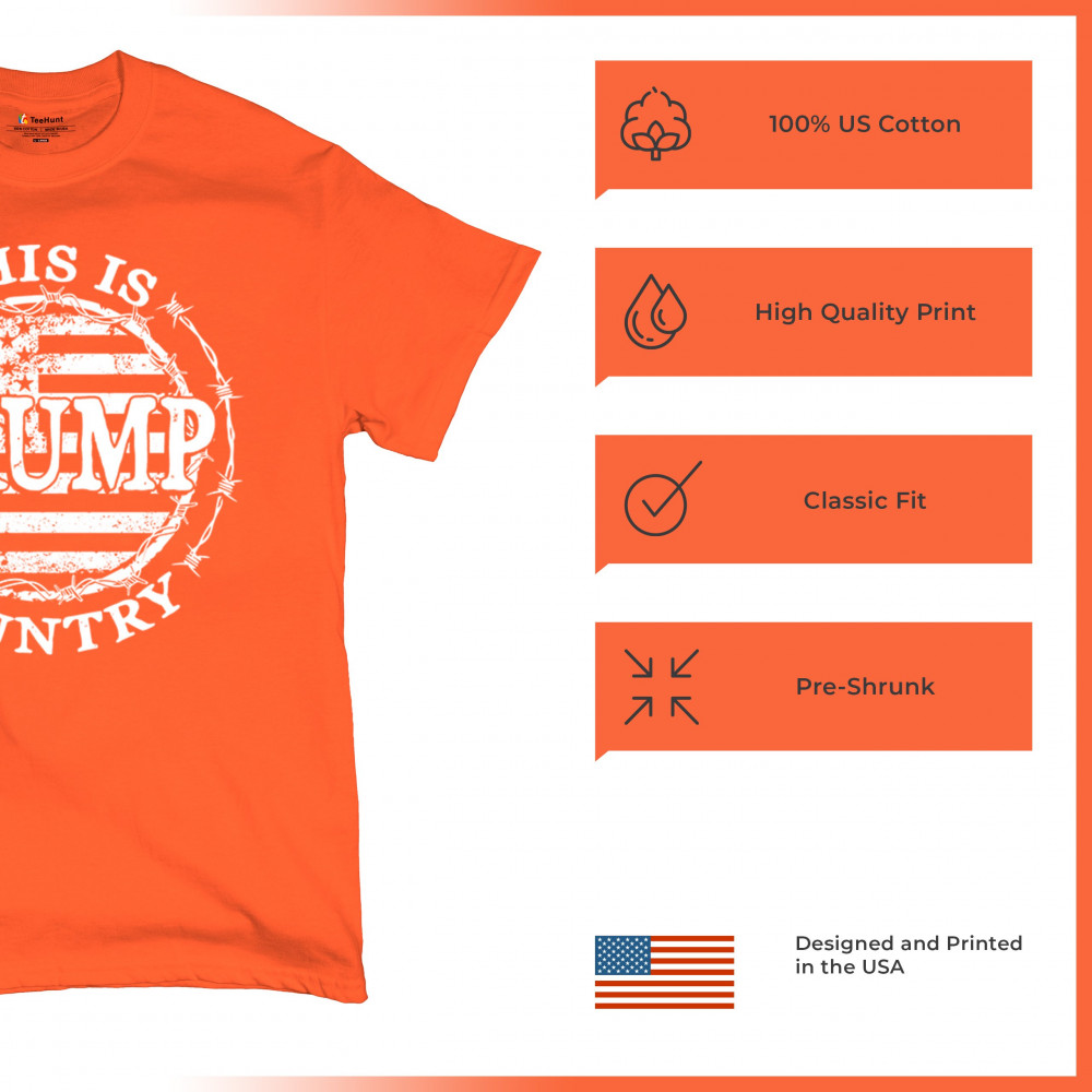 Show your support for Trump and JD Vance with the "Trump Country" design, featuring a distressed American flag and barbed wire. Perfect for rallies and patriotic events.