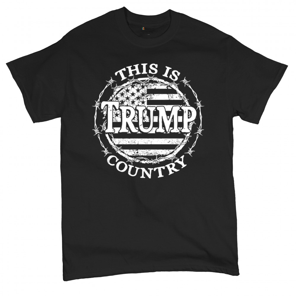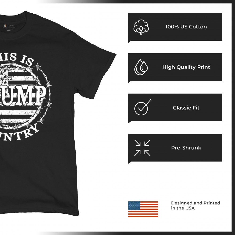 Show your support for Trump and JD Vance with the "Trump Country" design, featuring a distressed American flag and barbed wire. Perfect for rallies and patriotic events.