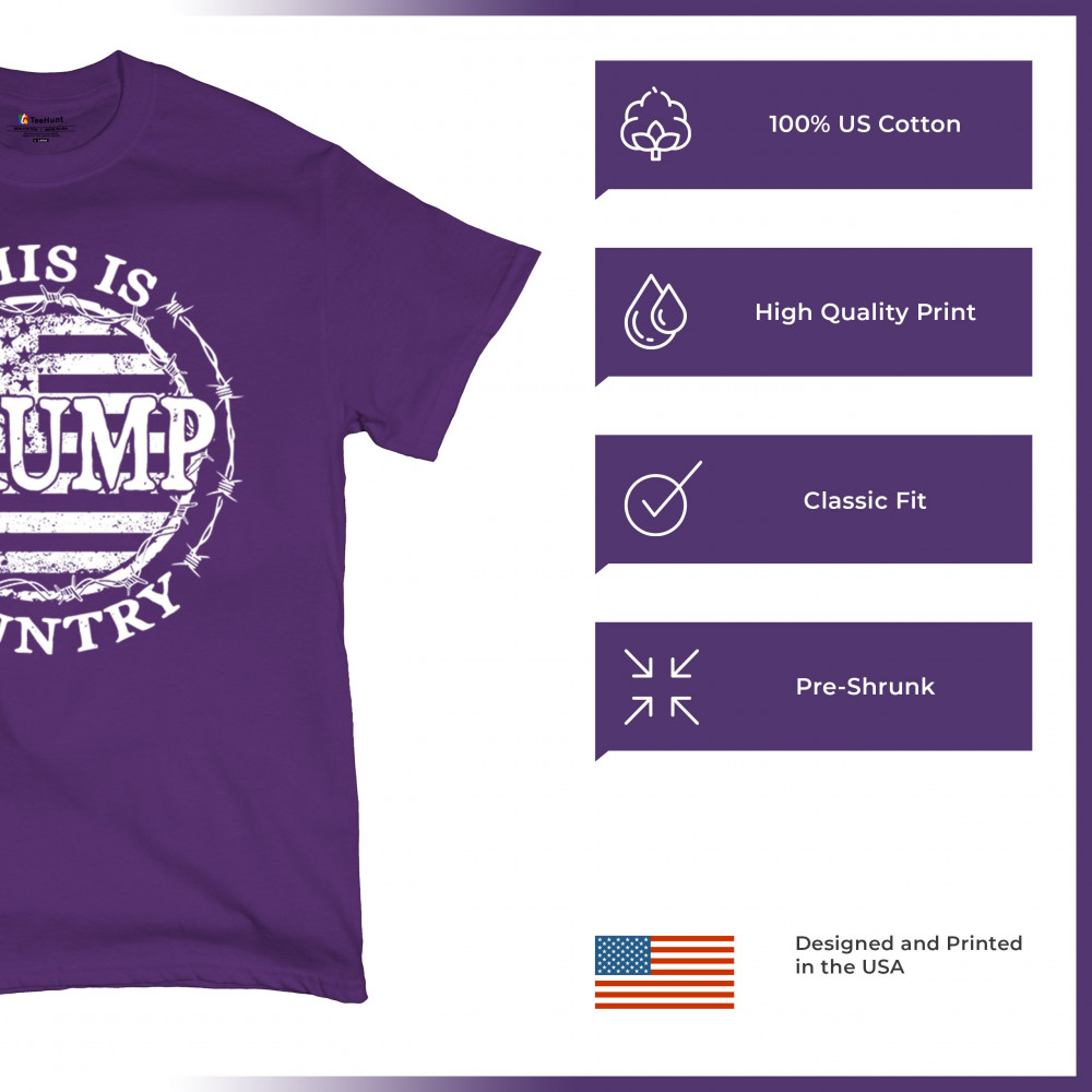 Show your support for Trump and JD Vance with the "Trump Country" design, featuring a distressed American flag and barbed wire. Perfect for rallies and patriotic events.