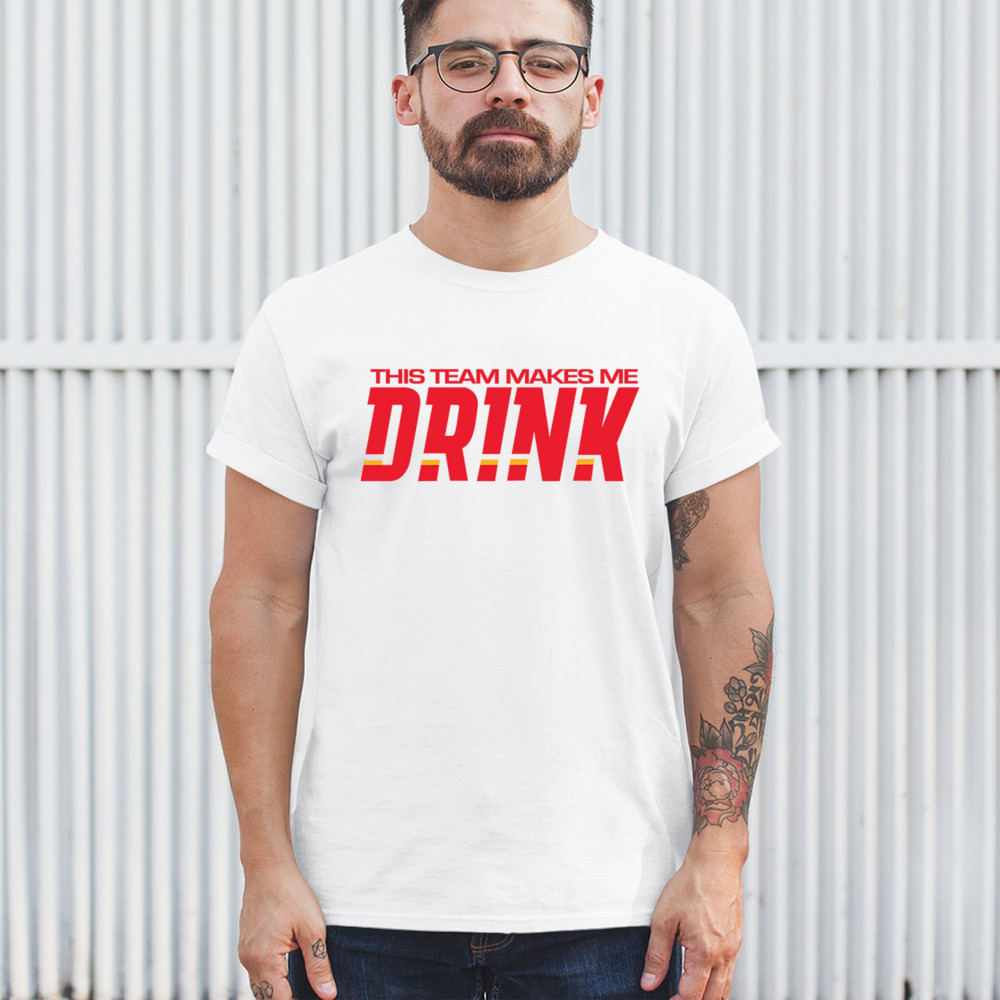 Add playoff energy to your Kansas football collection with this “This Team Makes Me Drink†design. Great for Fantasy Football rivalries, Game Day traditions, and tailgate party celebrations, it honors KC sports culture, football season pride, big game intensity, and the champions’ spirit. Built for Kansas fans who live the City of Fountains lifestyle and cheer on every KC playoff run.