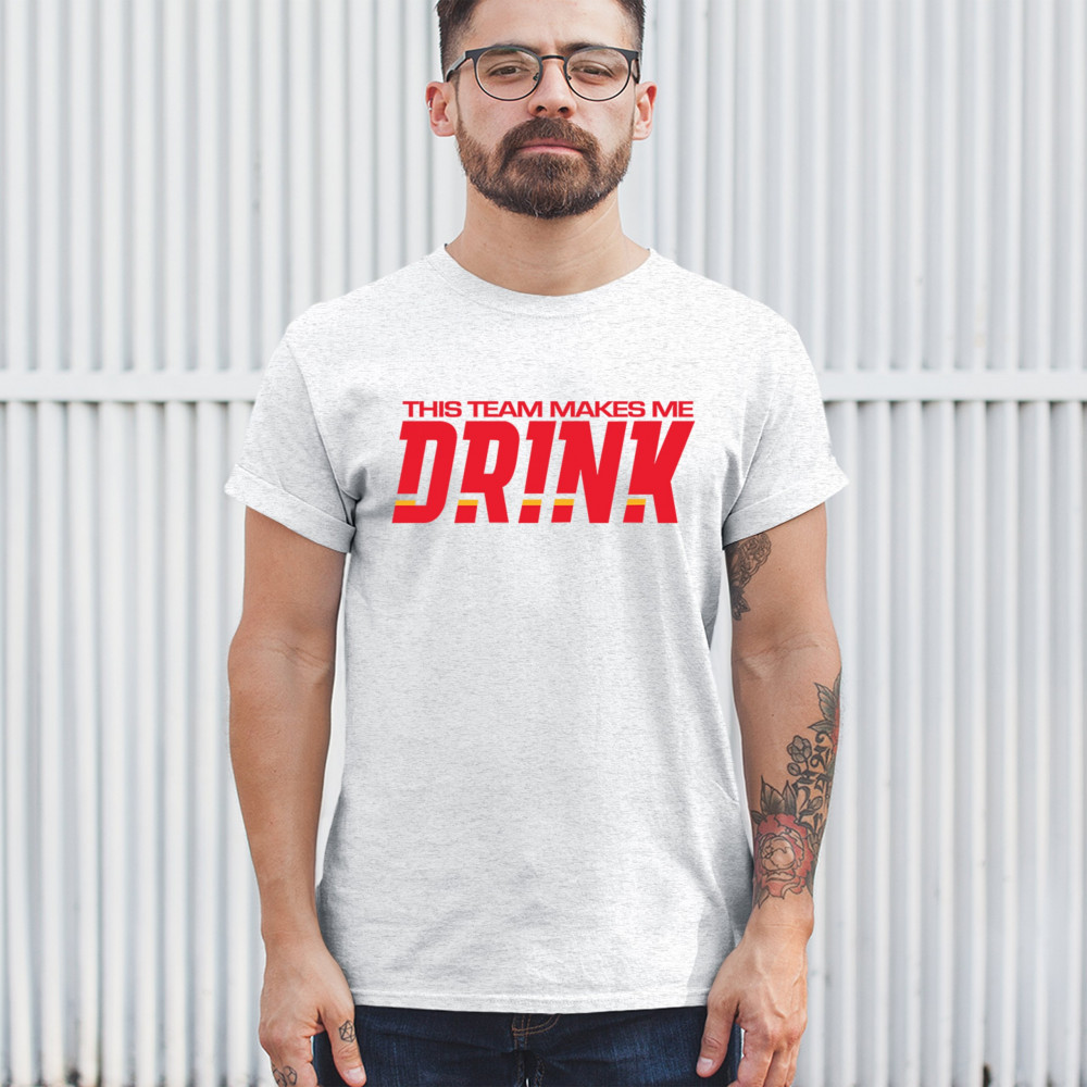 Add playoff energy to your Kansas football collection with this “This Team Makes Me Drink†design. Great for Fantasy Football rivalries, Game Day traditions, and tailgate party celebrations, it honors KC sports culture, football season pride, big game intensity, and the champions’ spirit. Built for Kansas fans who live the City of Fountains lifestyle and cheer on every KC playoff run.