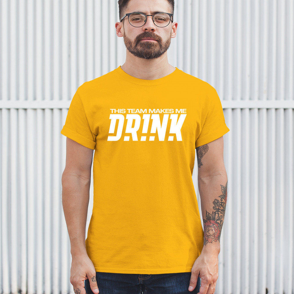 Celebrate Pittsburgh football fandom with this funny “This Team Makes Me Drink†design, built for Die Hard Football Fans and Game Night gatherings. Perfect for tailgate parties, Fantasy League rivalries, and weekend watch parties, it highlights Rust Belt football, gridiron tradition, black and gold pride, playoff energy, and Pittsburgh’s underdog grit.