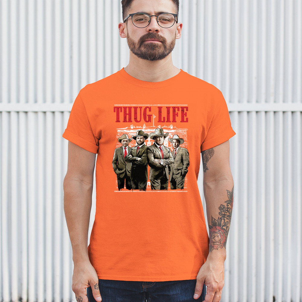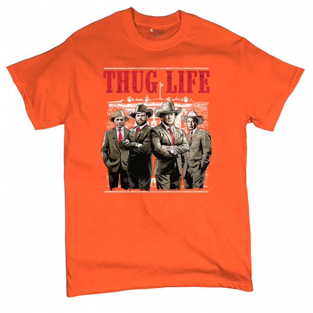 Make a statement with the Thug Life T-shirt, a must-have for every Republican and Trump supporter who stands for America First. Designed for those who believe in We The People Have Spoken, this shirt is perfect for rallies, events, or everyday wear. Featuring bold imagery and high-quality materials, it's a tribute to conservative values, the Red Wave, and the party of common sense. Get yours today and show your patriotic spirit.