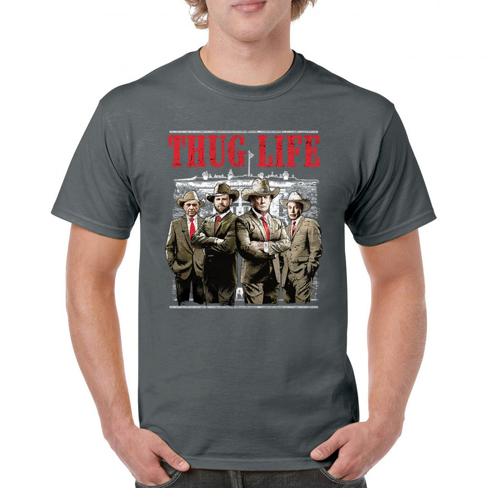 Make a statement with the Thug Life T-shirt, a must-have for every Republican and Trump supporter who stands for America First. Designed for those who believe in We The People Have Spoken, this shirt is perfect for rallies, events, or everyday wear. Featuring bold imagery and high-quality materials, it's a tribute to conservative values, the Red Wave, and the party of common sense. Get yours today and show your patriotic spirit.