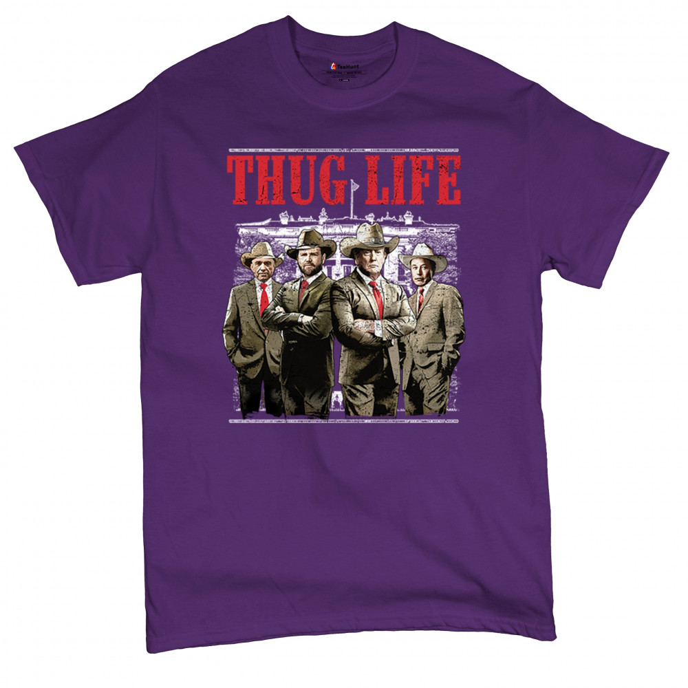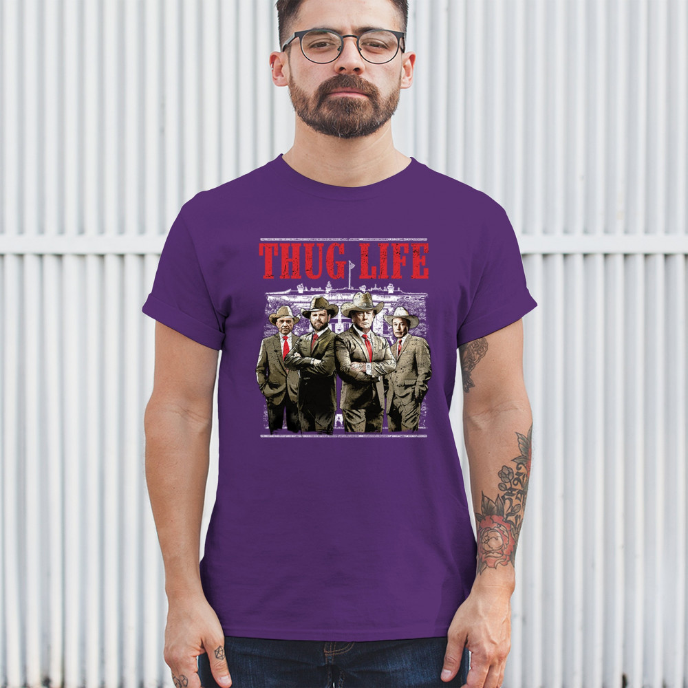 Make a statement with the Thug Life T-shirt, a must-have for every Republican and Trump supporter who stands for America First. Designed for those who believe in We The People Have Spoken, this shirt is perfect for rallies, events, or everyday wear. Featuring bold imagery and high-quality materials, it's a tribute to conservative values, the Red Wave, and the party of common sense. Get yours today and show your patriotic spirit.