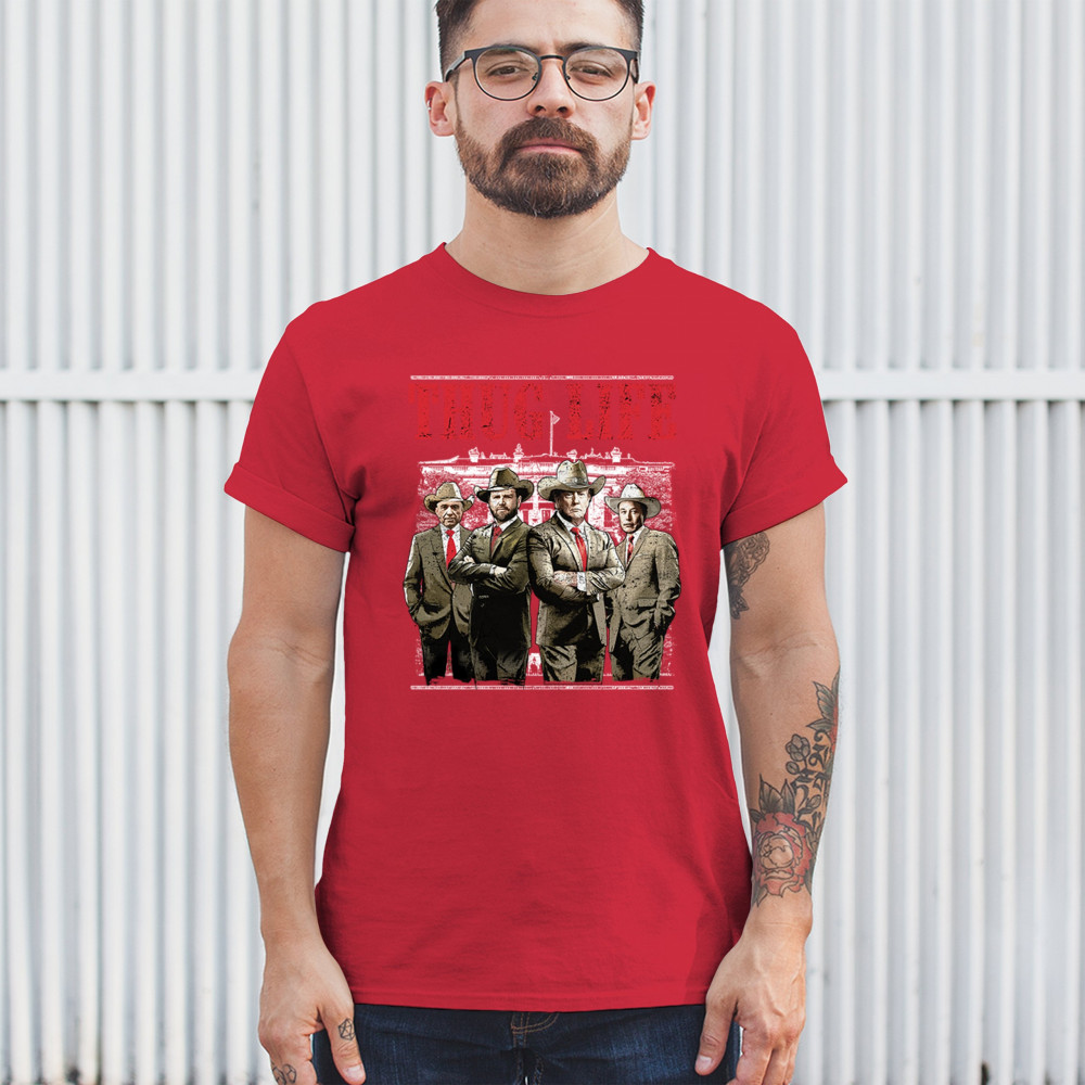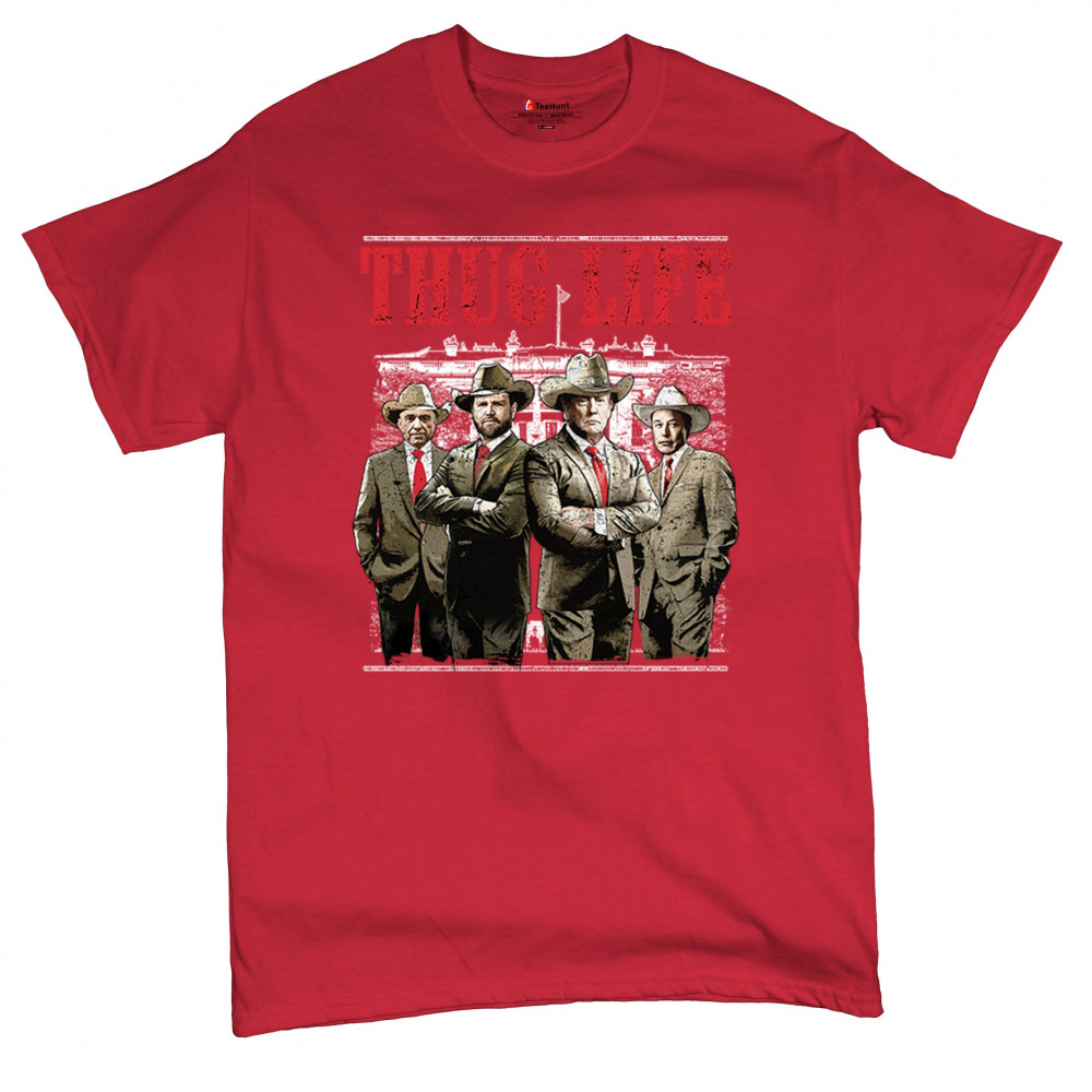 Make a statement with the Thug Life T-shirt, a must-have for every Republican and Trump supporter who stands for America First. Designed for those who believe in We The People Have Spoken, this shirt is perfect for rallies, events, or everyday wear. Featuring bold imagery and high-quality materials, it's a tribute to conservative values, the Red Wave, and the party of common sense. Get yours today and show your patriotic spirit.