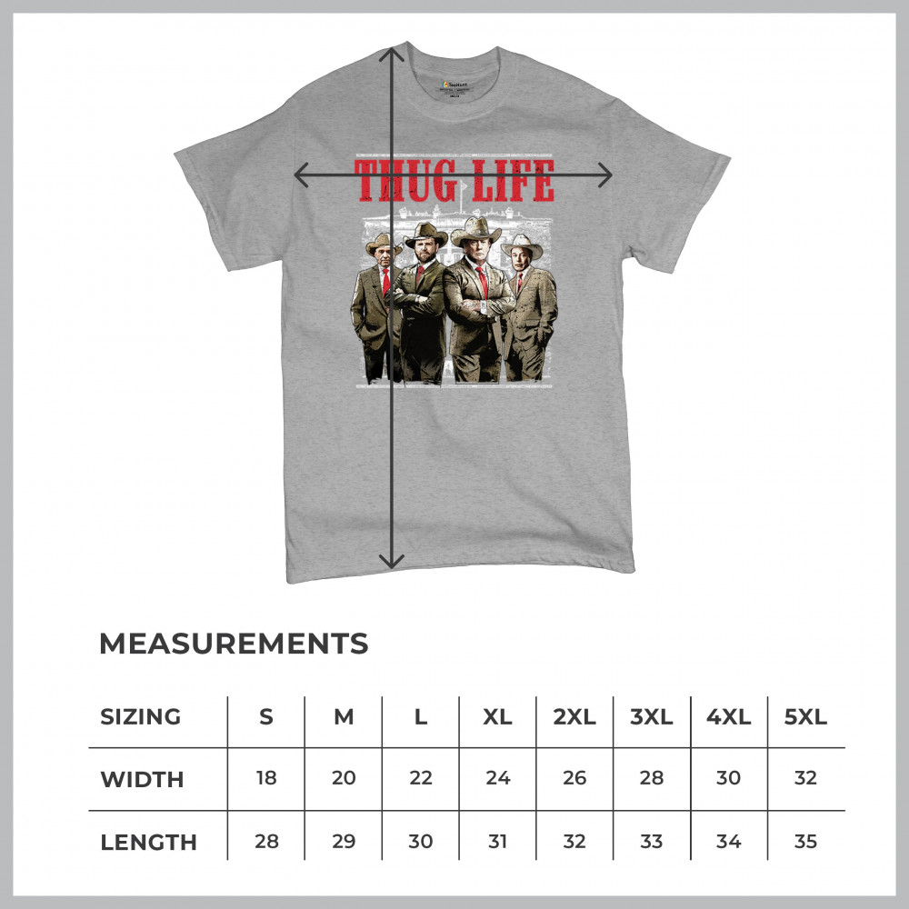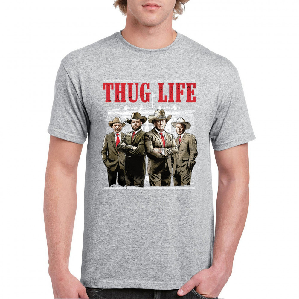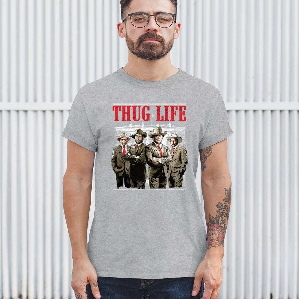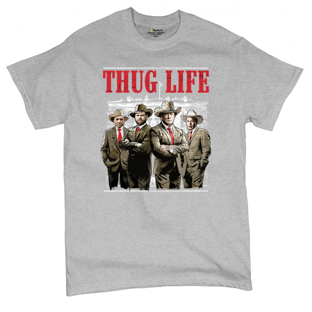 Make a statement with the Thug Life T-shirt, a must-have for every Republican and Trump supporter who stands for America First. Designed for those who believe in We The People Have Spoken, this shirt is perfect for rallies, events, or everyday wear. Featuring bold imagery and high-quality materials, it's a tribute to conservative values, the Red Wave, and the party of common sense. Get yours today and show your patriotic spirit.