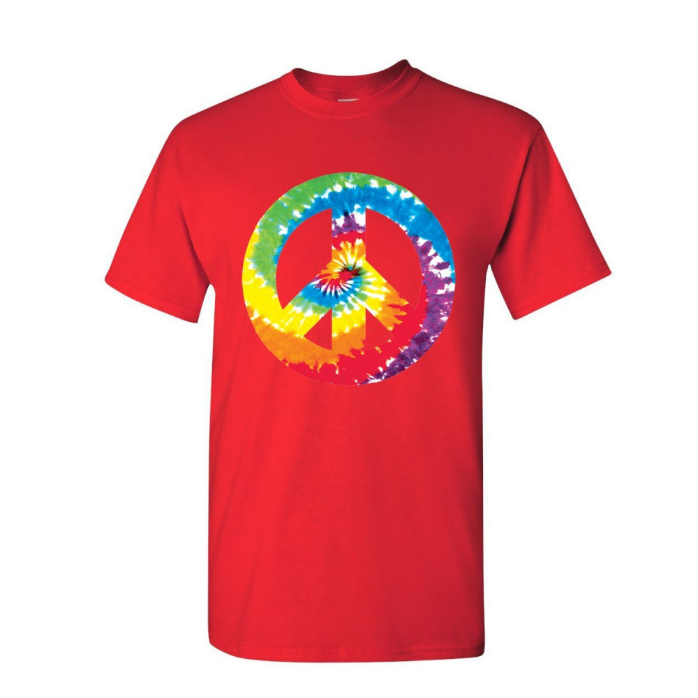 TIE DYE PEACE SYMBOL 80'S t-shirt hippie happiness love not war mens tee shirt red