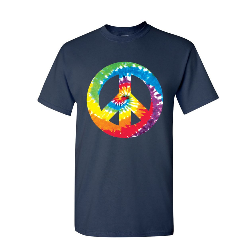TIE DYE PEACE SYMBOL 80'S t-shirt hippie happiness love not war mens tee shirt navy blue