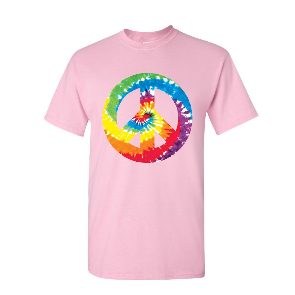 TIE DYE PEACE SYMBOL 80'S t-shirt hippie happiness love not war mens tee shirt light pink