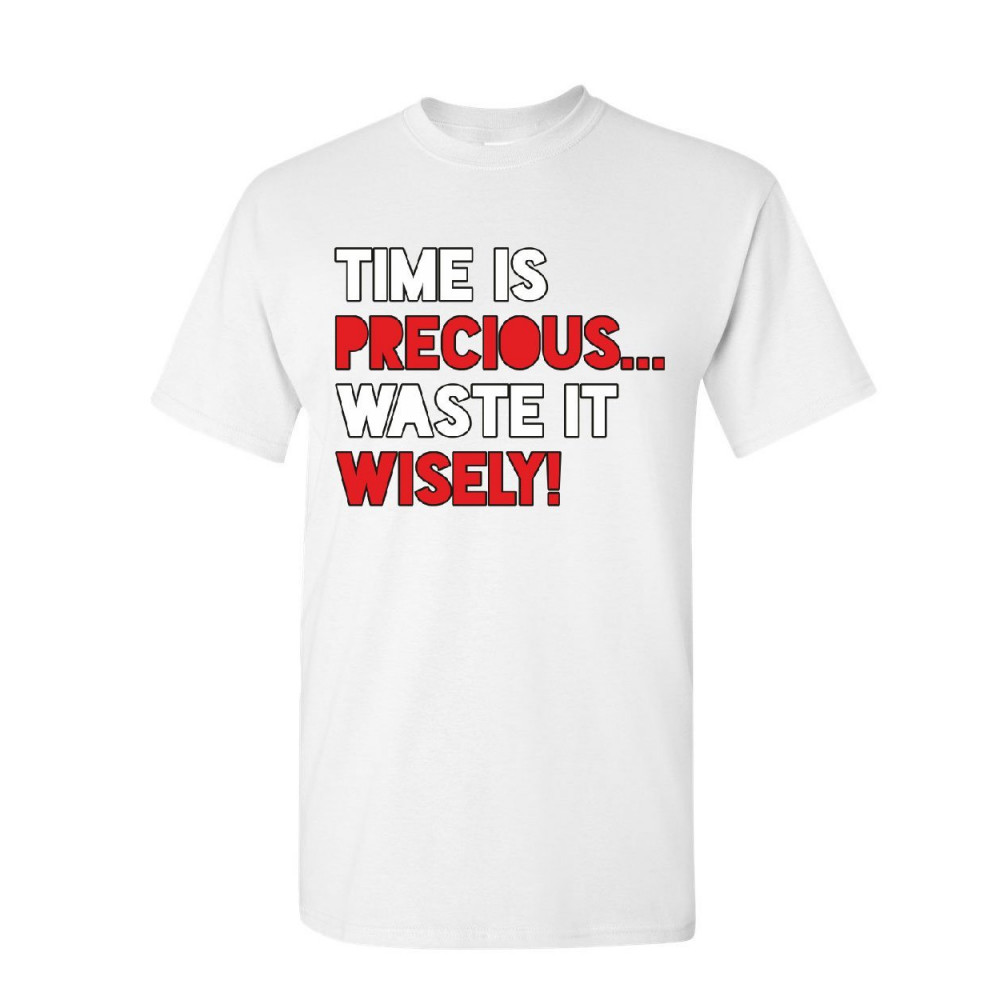 TIME IS PRECIOUS WASTE IT WISELY! time is precious waste it wisely t-shirt college humor lazy fun mens tee shirt white