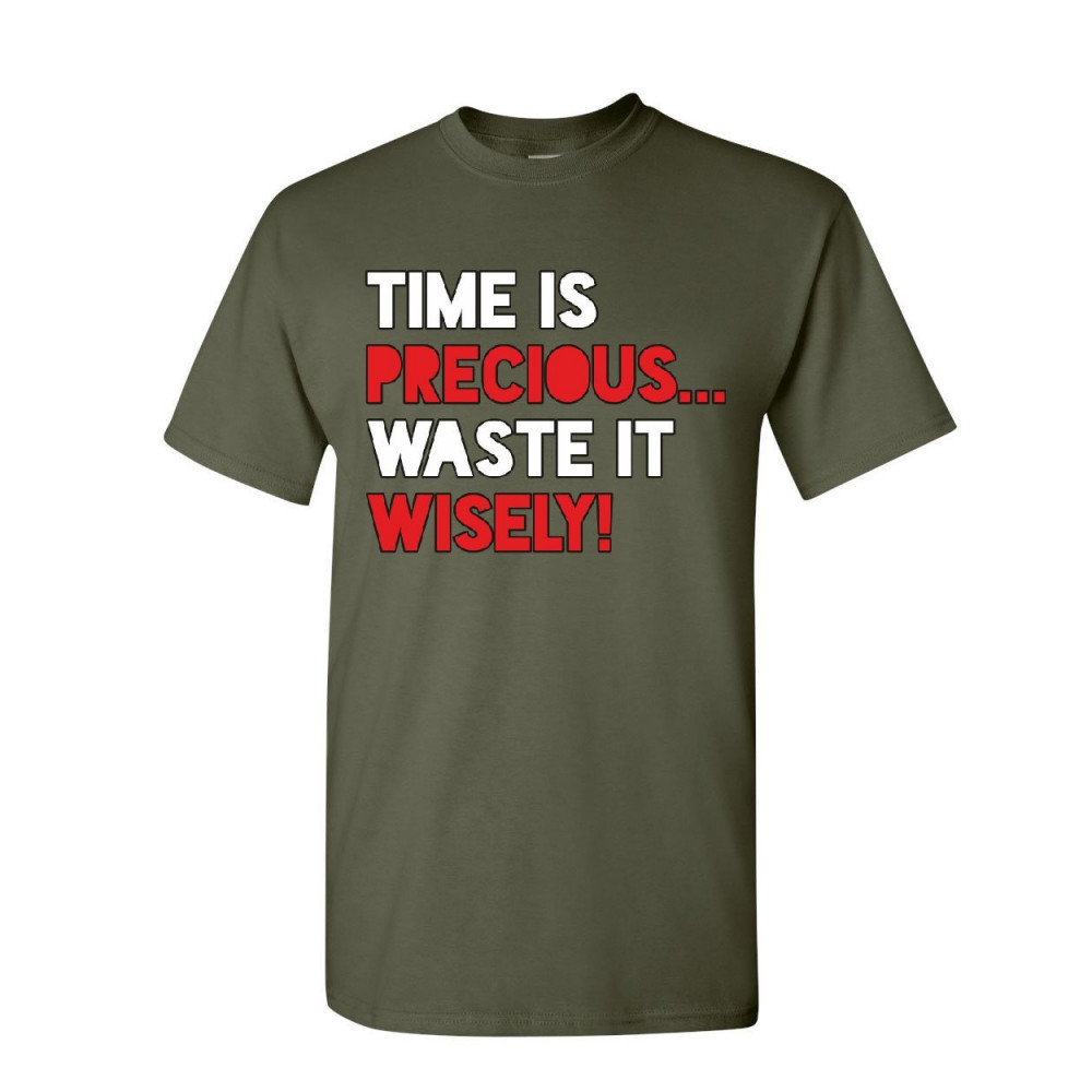 TIME IS PRECIOUS WASTE IT WISELY! time is precious waste it wisely t-shirt college humor lazy fun mens tee shirt military green