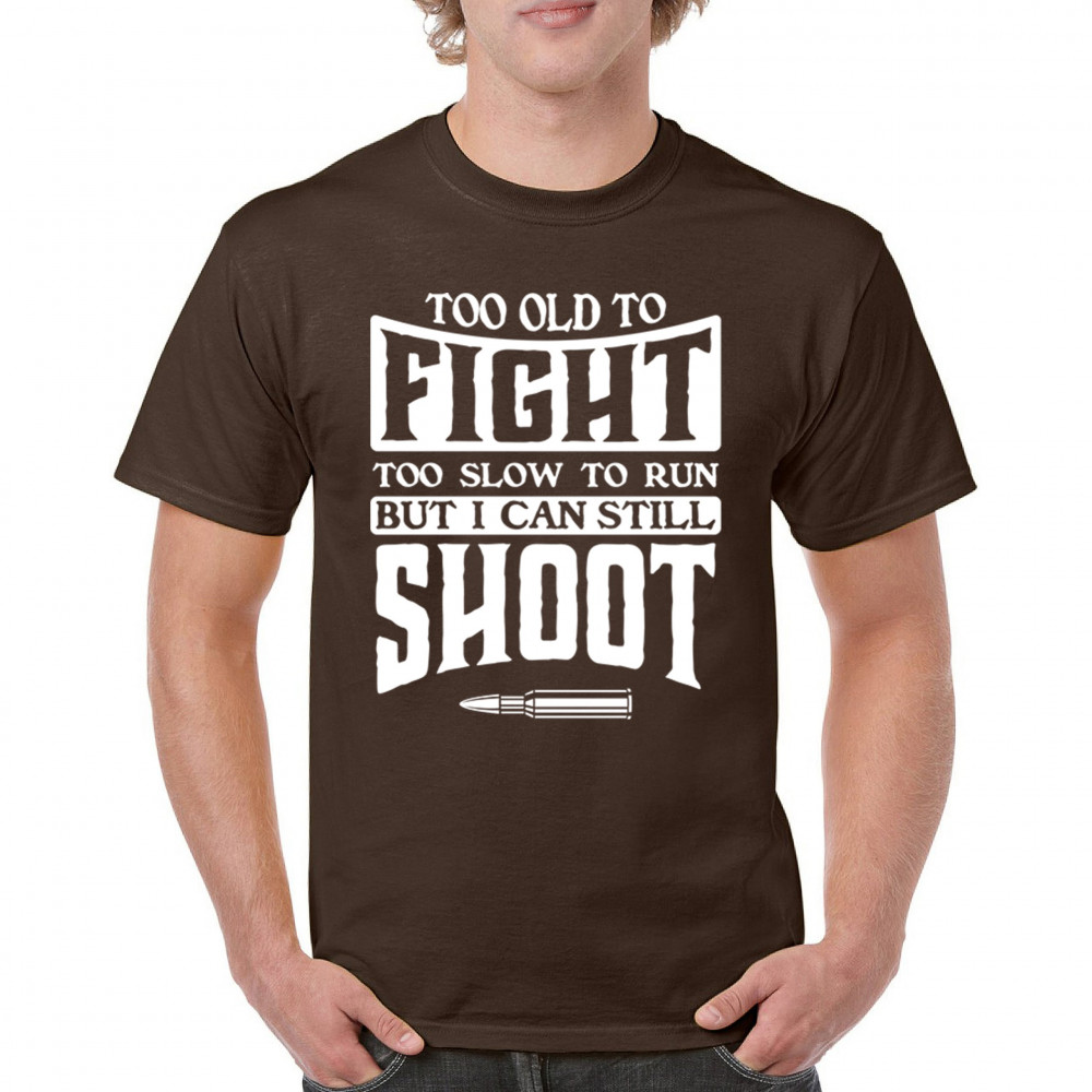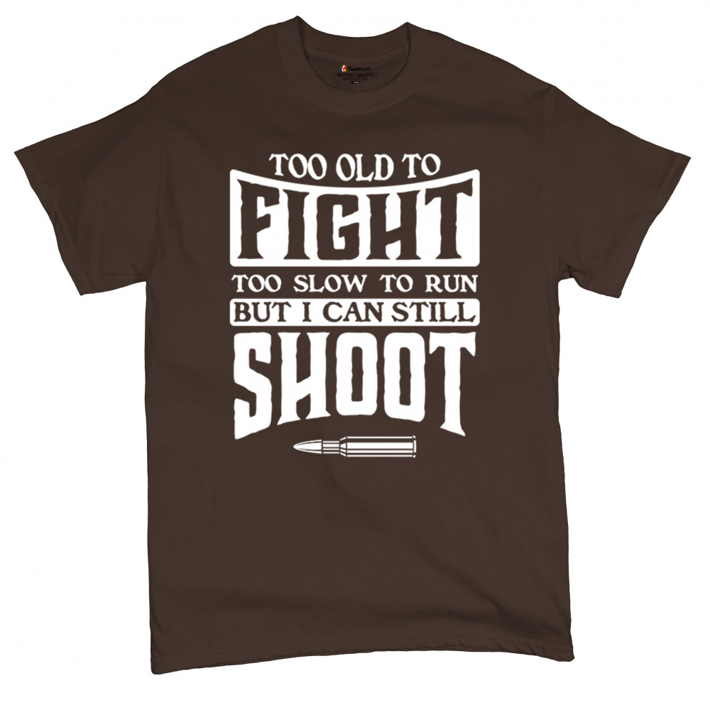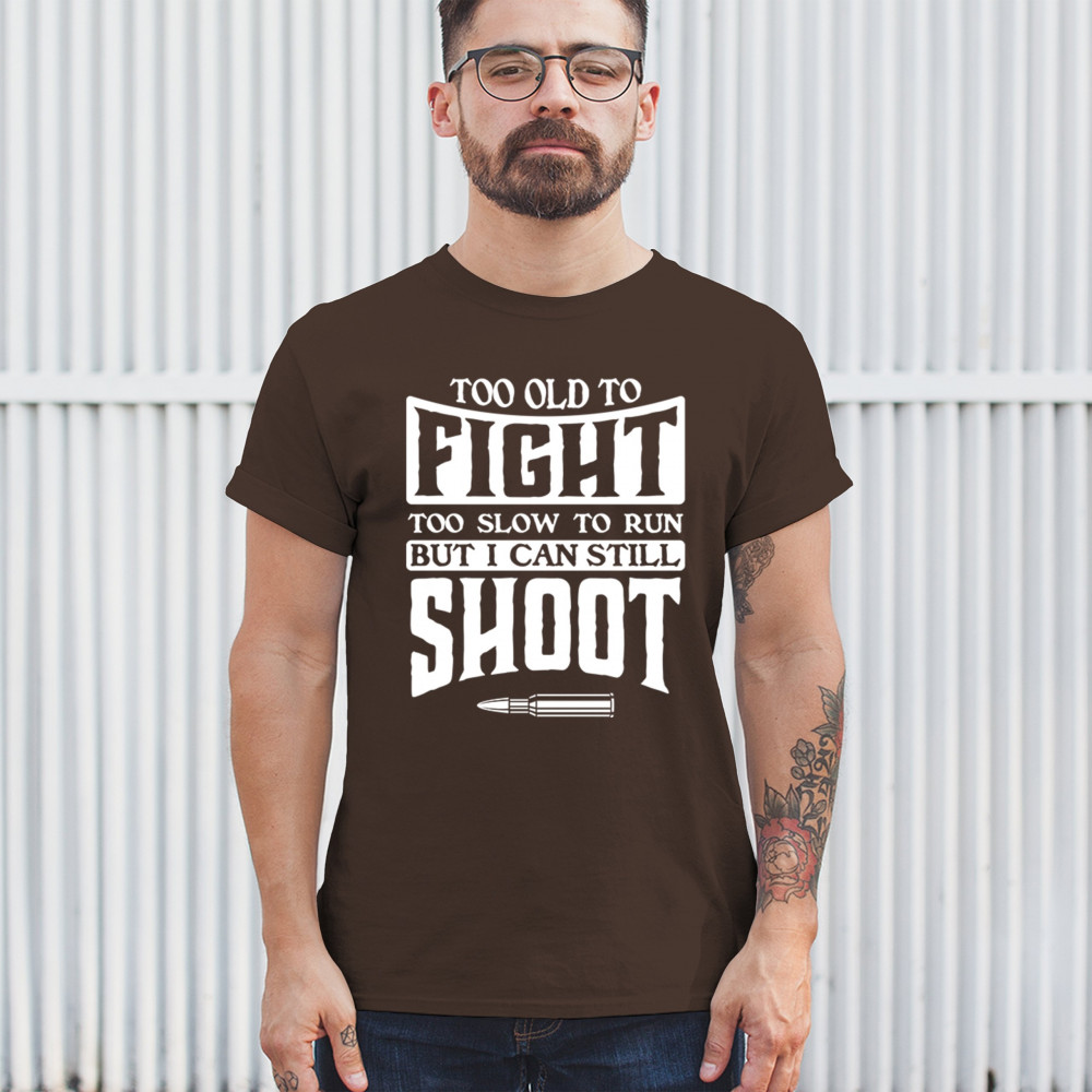 TOO SLOW TO RUN BUT CAN STILL SHOOT t-shirt 2nd amendment gun right men's tee brown