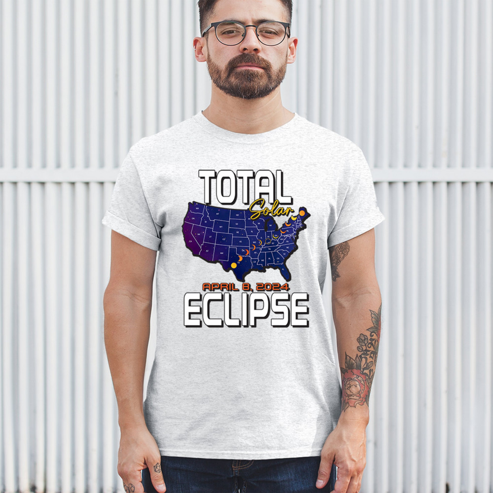 Immerse yourself in the celestial wonder with our solar eclipse graphic design. Depicting the enchanting interplay of the sun and moon, this shirt is essential for enthusiasts of astronomy. Don it with pride and commemorate the marvel of a total solar eclipse!