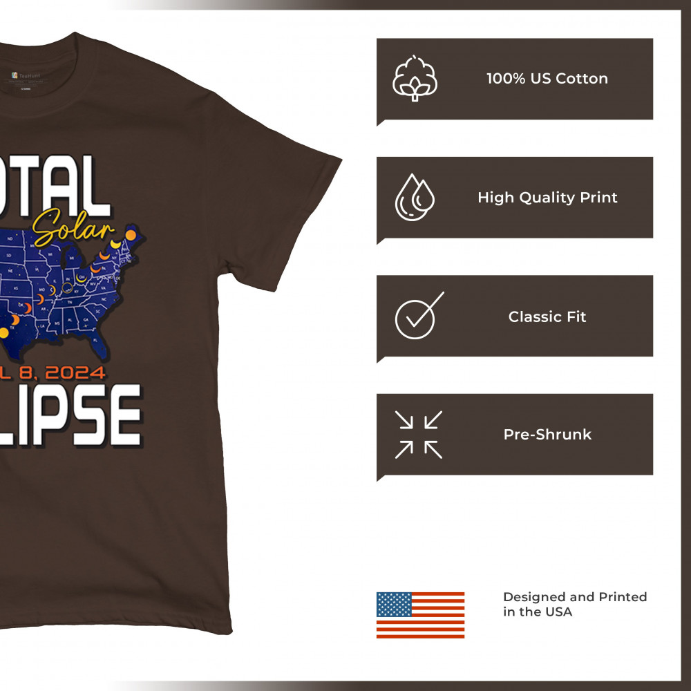 Immerse yourself in the celestial wonder with our solar eclipse graphic design. Depicting the enchanting interplay of the sun and moon, this shirt is essential for enthusiasts of astronomy. Don it with pride and commemorate the marvel of a total solar ecl